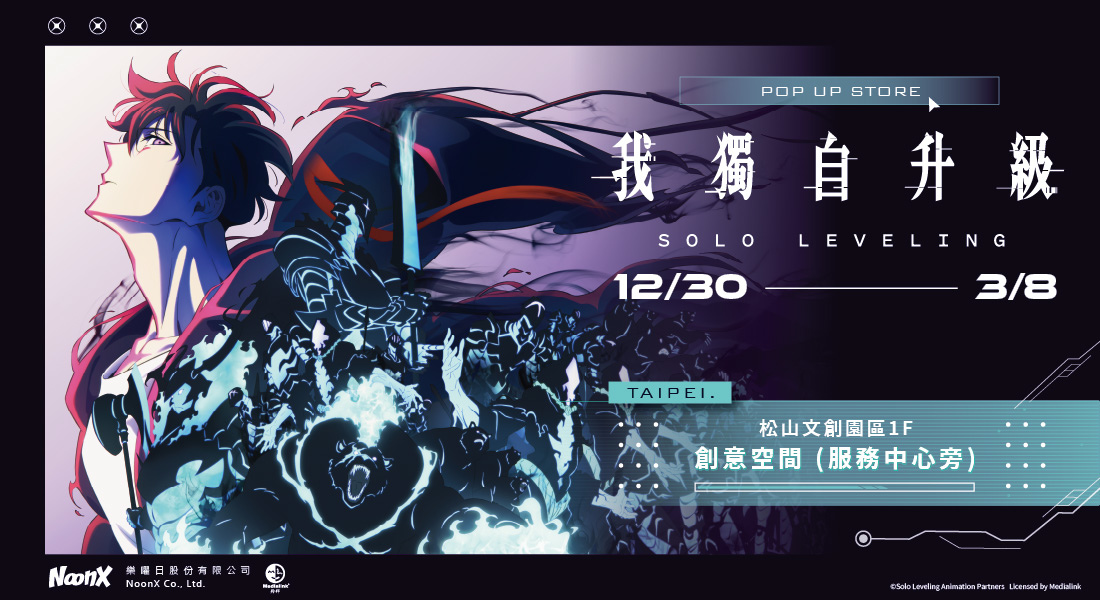 全球人氣爆棚的熱血動畫《我獨自升級》即將於12月30日至2026年3月8日在松菸文創園區-辦公廳舍1F.創意空間盛大開幕,帶來沉浸式「升級戰鬥」快閃體驗,粉絲可近距離與成振宇及闇影軍團同框拍照,並搶購限定周邊。
