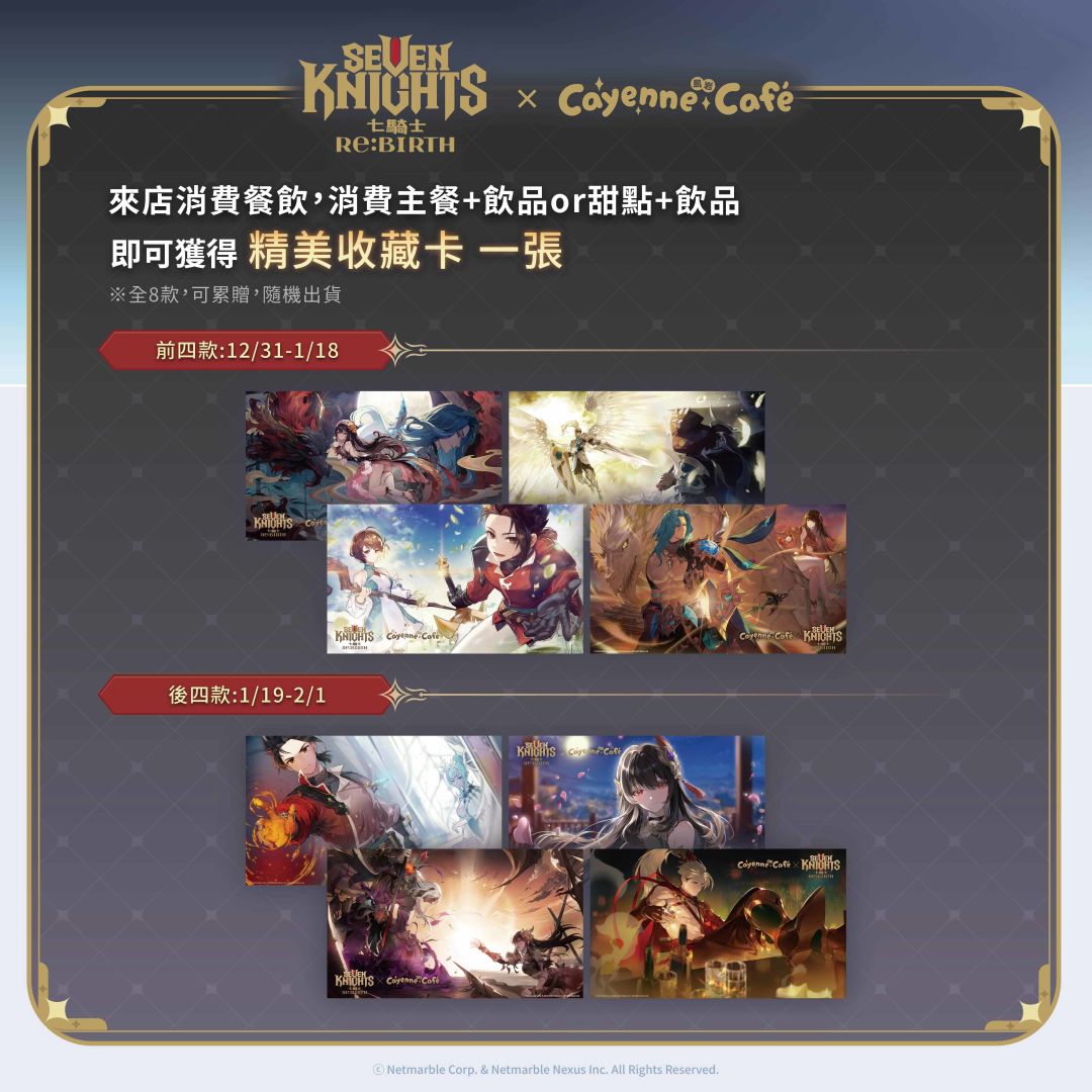 全球領先、知名高品質遊戲開發與發行公司的網石集團(Netmarble Corporation)今宣布,旗下收集型 RPG《七騎士 Re:BIRTH》攜手「凱岩主題餐廳 Cayenne Café」,自即日起至 2026 年 2 月 1 日止,推出為期 1 個月的聯名主題咖啡廳。本次活動以遊戲核心風格為靈感,打造出充滿《七騎士》情懷的專屬空間。此外,官方目前正釋出遊戲內優惠券序號獎勵,玩家將可免費獲得全新英雄-四皇 [鬥戰勝佛] 孫悟空。
