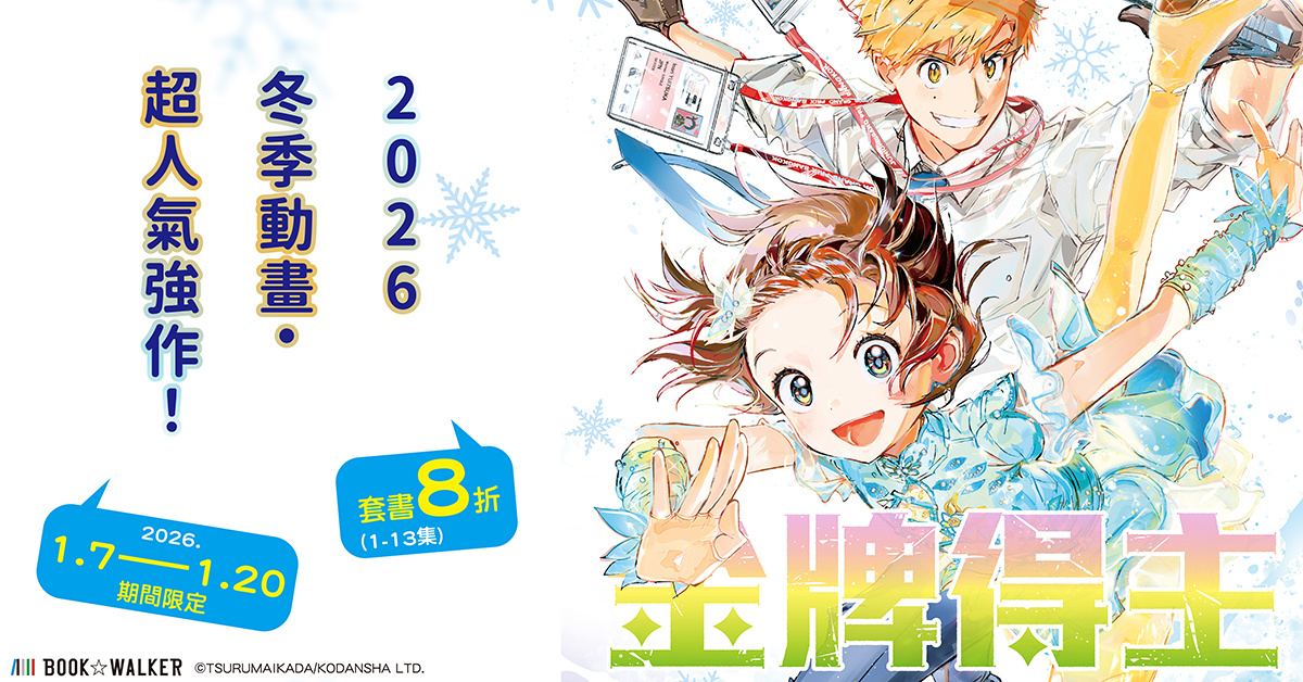 1 月 7 日至 1 月 20日,三部人氣精選作品推出期間限定套書 8 折優惠。活動作品包含動畫第二季熱播中的花式滑冰競技作《金牌得主》,描寫圓夢受挫的青年與不被看好的少女攜手挑戰世界級舞台;Netflix人氣 BL 電影《10DANCE》,刻畫專攻國標舞與拉丁舞的兩位選手,為備戰十項舞科錦標賽而相互指導,在切磋中逐漸拉近距離;以及本季開播的校園「王子」戀愛作《皎潔深宵之月》,講述被稱為「王子」的帥氣女孩,與外表輕浮卻溫柔的學長相遇後,展開一段青澀真摯的戀情。新會員註冊即可獲得 79 折優惠券,搭配套書活動使用,最高可享 64 折優惠,輕鬆收藏最愛作品!