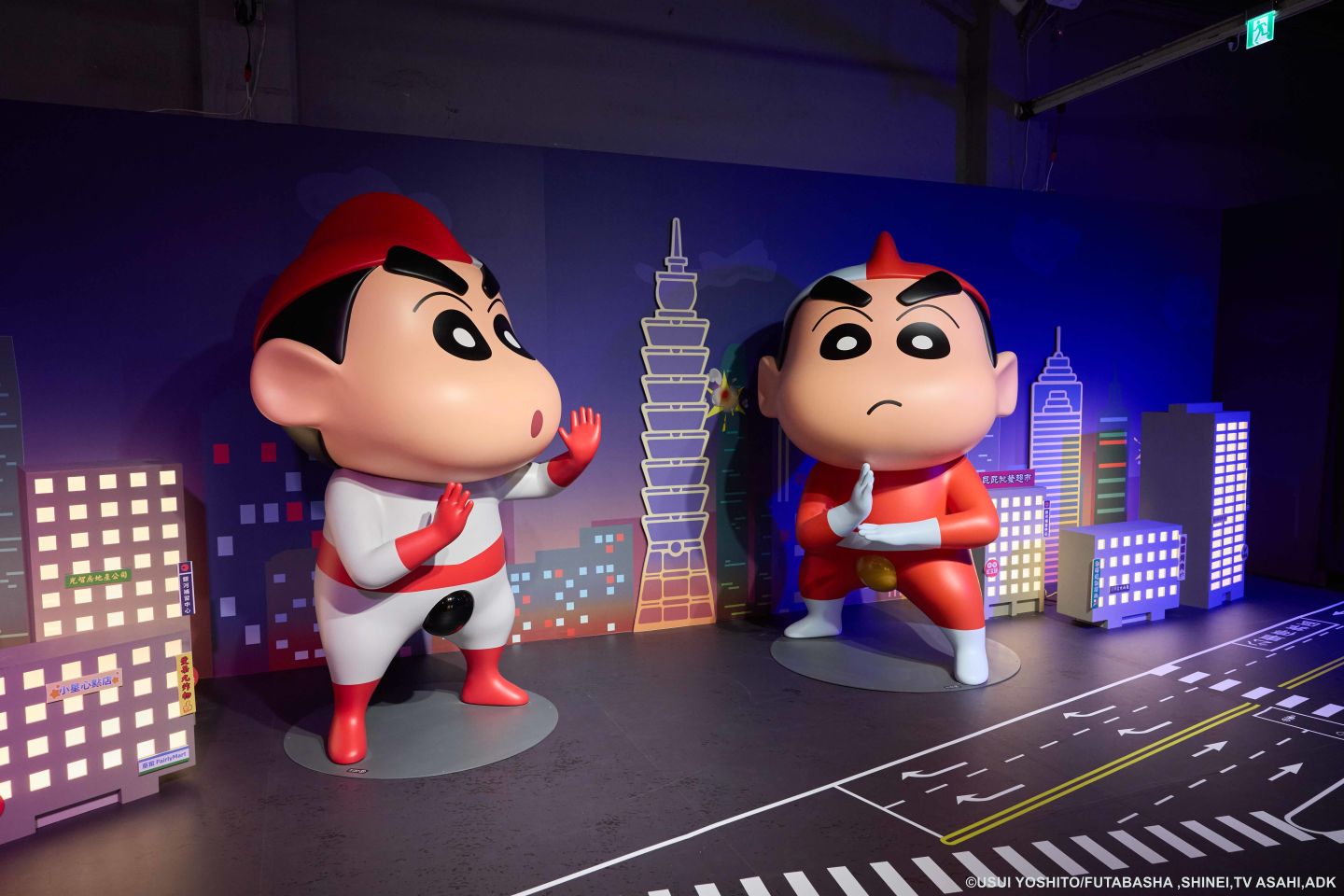 「蠟筆小新玩轉!時空大冒險互動體驗展」本次來台更祭出限定的「台北特攝區」,以《蠟筆小新:3 分鐘百變大進擊》為靈感,首度將電影中真假小新正面對決的經典橋段搬進台北街區,帶領觀眾沉浸於「巨大化小新」的震撼場面之中。展區場景細節亦高度還原台北城市風貌,除了參考華山的實際街道設計,背景更融入台北101、國父紀念館等在地色彩建築,營造宛如電影實景拍攝的臨場感。該區更特別規劃縮小比例造景的打卡區,營造特攝電影拍攝現場的視覺效果,讓觀眾彷彿走進巨大英雄與怪獸交戰的片場之中,此區的互動遊戲則邀請觀眾化身戰鬥成員,加入打怪行列,一同守護打卡區中的民眾,成為「台北特攝區」的關鍵角色,為展覽注入僅限台北才能體驗的專屬驚喜。