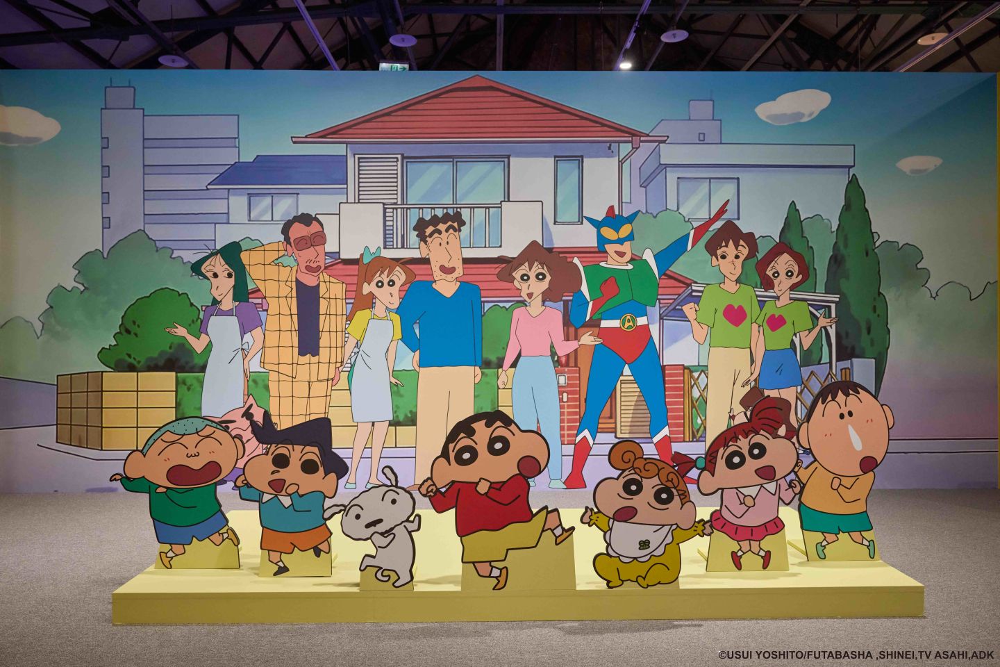 「蠟筆小新玩轉!時空大冒險互動體驗展」首度規劃超大腹地雙層展區,集結 10 大主題場景,完整串聯漫畫、動畫以及多部電影精華橋段,展區開場即由「野原家客廳」的介紹影片揭開序幕,除了重現原汁原味的生活場景,影片更特別邀請台灣官方配音員為小新、廣志與美冴獻聲,彷彿推開家門就聽見野原一家日常對話,將瞬間喚醒童年記憶,正式展開這趟時空冒險。