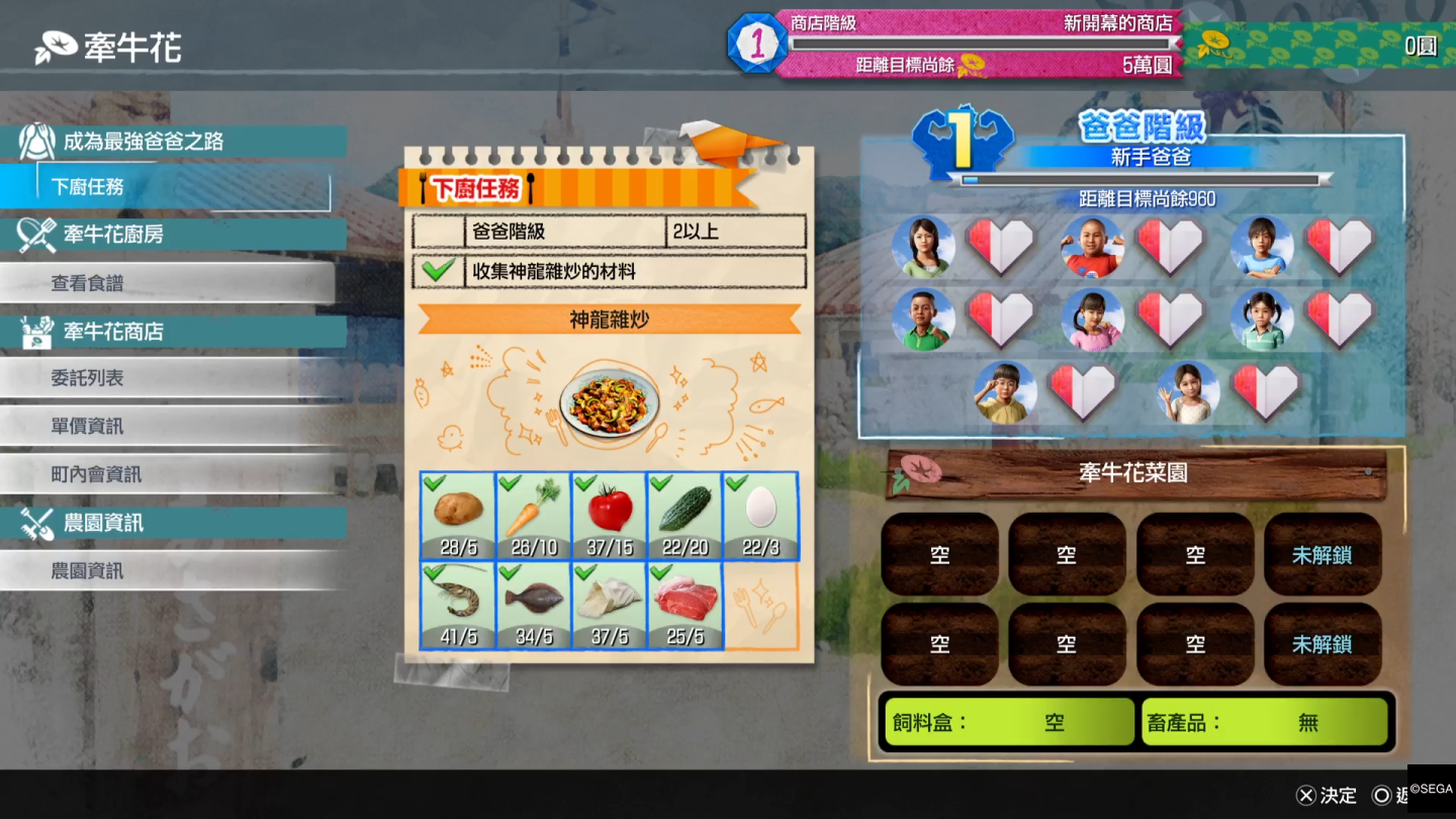 主線劇情方面,原本在三代中顯得零碎的育幼院劇情,這次被統整養成系統「牽牛花生活」。桐生會必須親自參與下廚、農耕、指導作業甚至是操作縫紉機等日常,都以小遊戲、問答方式進行。而隨著「爸爸階級」提升,玩家能解鎖更多關於九個孩子的「羈絆故事」,等同以往的連續支線進行呈現。