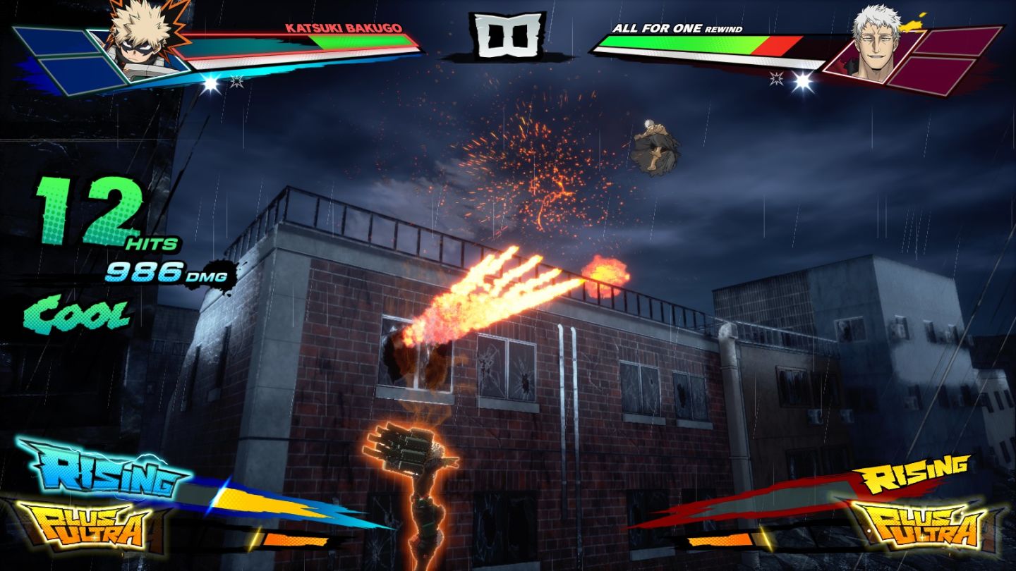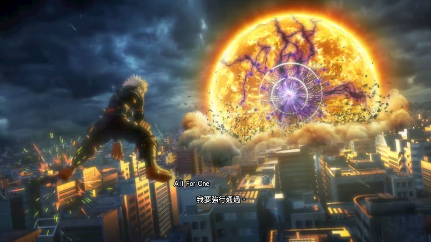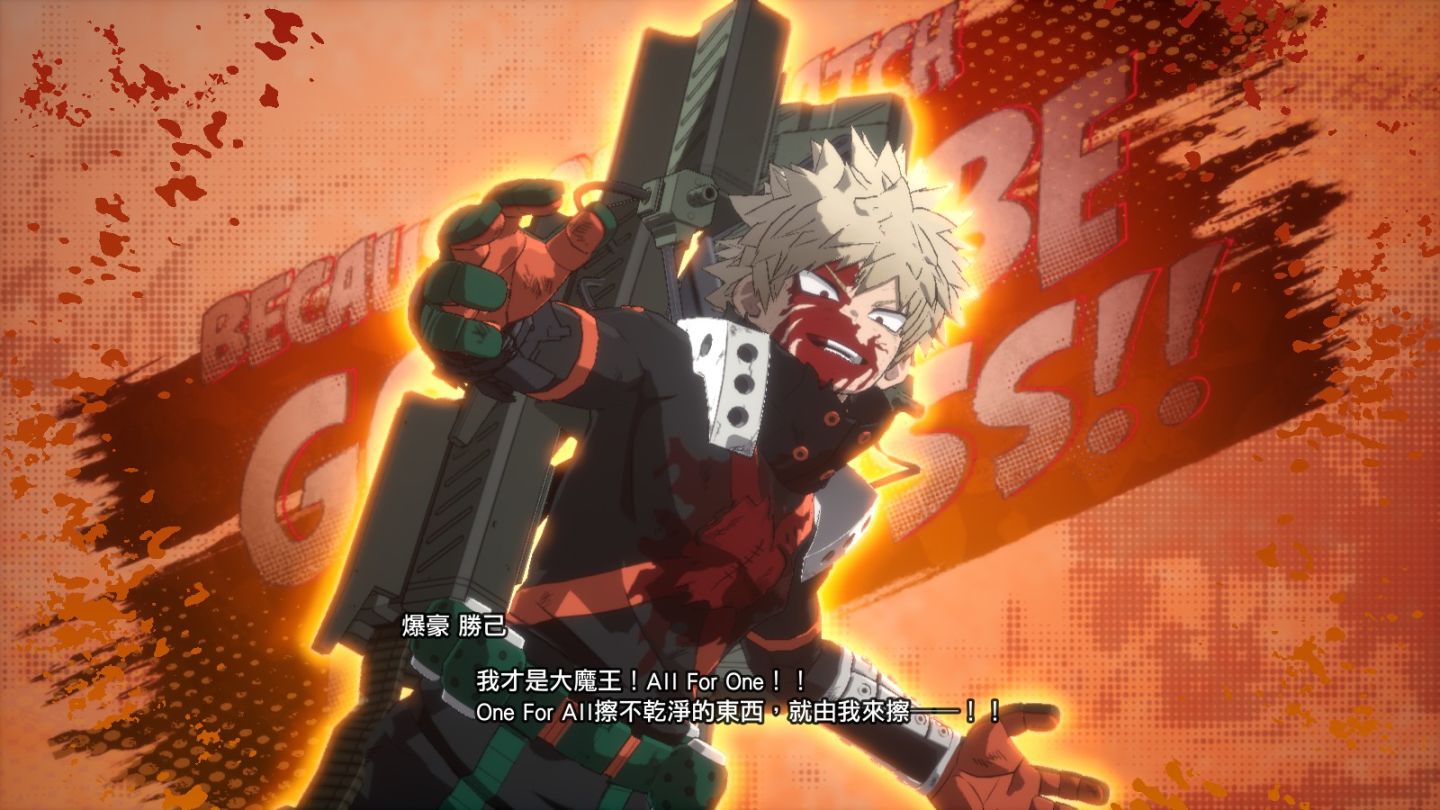 試玩版本內容雖然只允許媒體遊玩爆豪對決 ALL FOR ONE 的部分,但包含此章節在內有有超過 20 個章節,其中有些部分是以遊戲 3D 動畫進行重新詮釋,戰鬥階段則是還原劇情當下的角色對決,因此不會採用 3 ON 3 的場面出現。