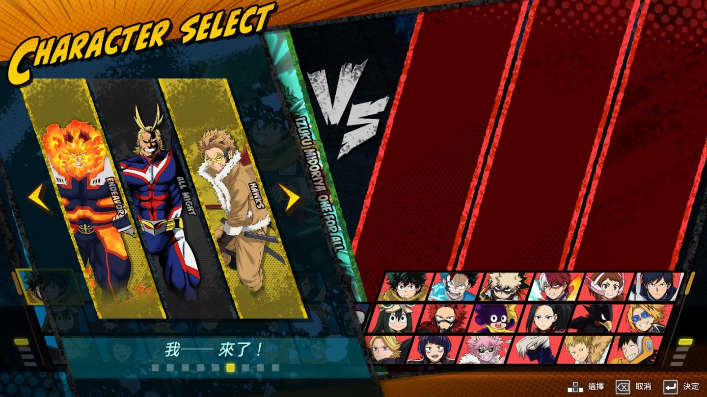 合計在測試版本中就提供了多達 68 種角色登場,當然最終章讓粉絲最驚艷的新姿態「裝甲歐爾麥特」也是在其中,玩家可以自由選擇想要的敵聯合隊伍與英雄隊伍來場激烈對戰,例如歐爾麥特師徒搭檔對決 ALL FOR ONE 全型態的夢幻對戰。
