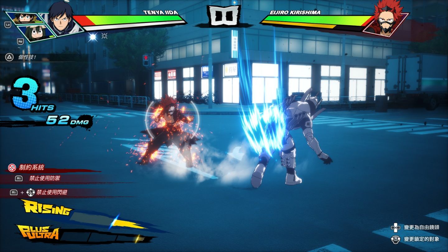 同時開發團隊有對角色的操作手感調整過,打擊感遠比前兩作實在點,而且速度感也同步提升,能夠體現出角色「個性」發揮的差異。再來就是本作引入的「RISING」機制,系統可以讓角色在能量槽充滿後變身成另一形態,個性技也會大幅提昇。