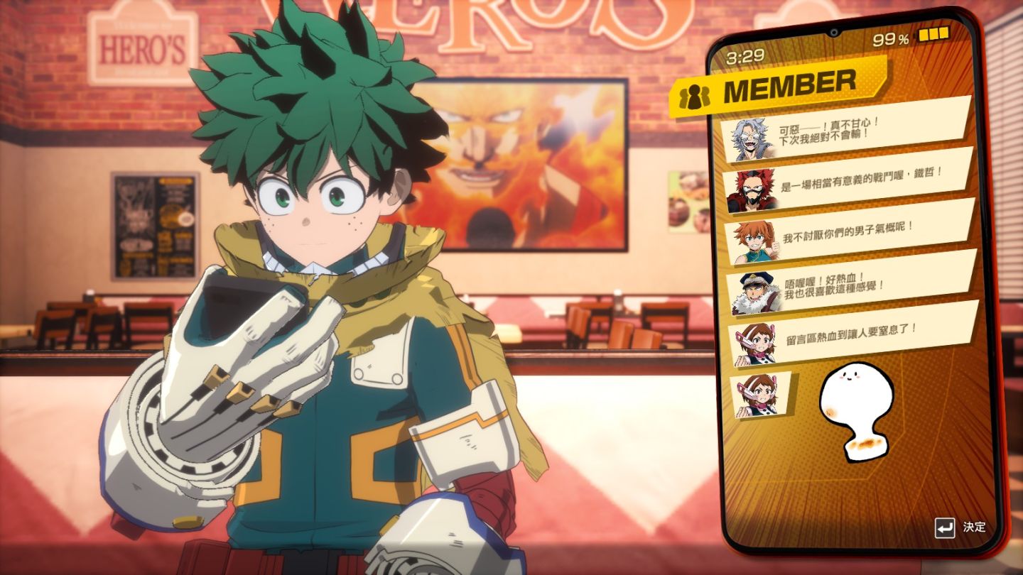 如果是對這三人以外的A班角色更感興趣的粉絲,那就不能錯過「英雄日誌」模式,這裡均採全語音規格製作,涵蓋戰鬥語音與劇情對話,可以看到雄英學生們在戰鬥之外的日常原創劇情。