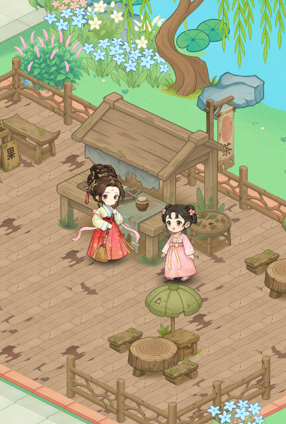 茶樓正式開張後,將迎來各種顧客上門提出不同需求的訂單。玩家只需透過簡單的手指滑動,即可進行「合成」,製作對應的道具來完成訂單。每生產一個小道具都會消耗體力,將兩個相同的道具合成後,即可升級為更高階的物品,完成訂單後可獲得銅幣與各類資源,用來裝修茶樓、打造專屬風格空間。