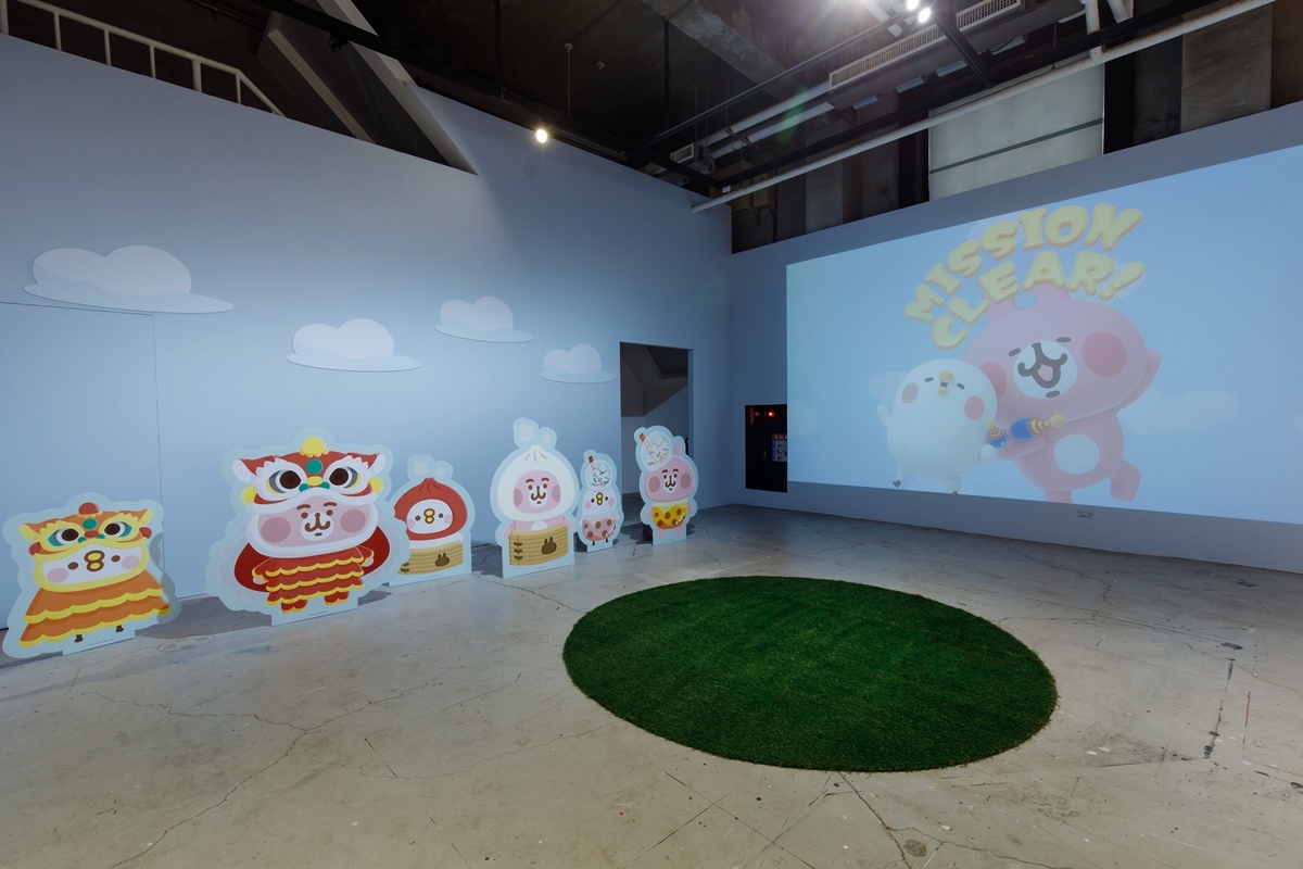 展期橫跨整個春節假期,怎麼拍都應景。室內空間還設有巨型遊戲開場畫面投影,搭配熟悉又療癒的遊戲音樂,讓人彷彿置身遊戲世界之中。離場前,別忘了和展區外趴在窗戶上、模樣超逗趣的 P助與粉紅兔兔合影留念!