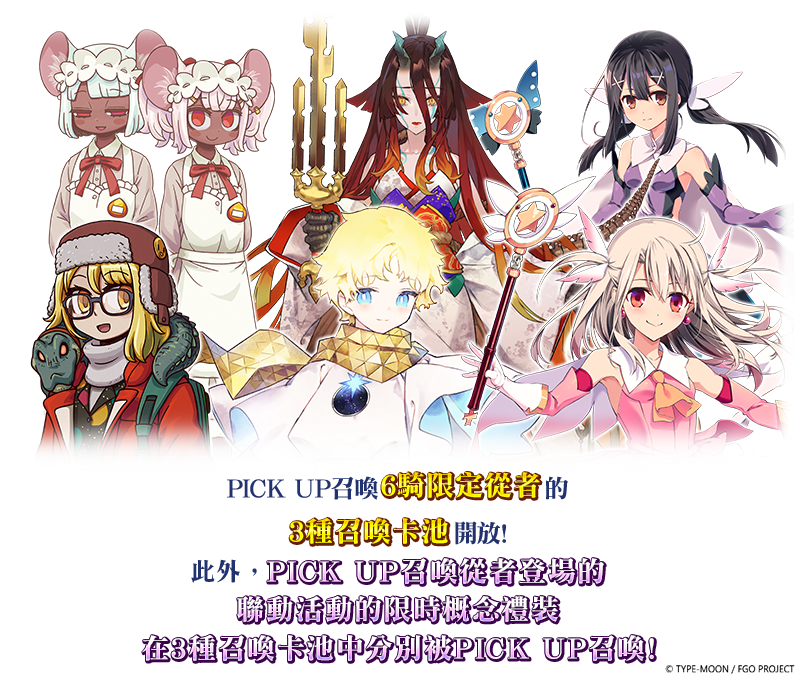 官方同步推出「歷代聯動活動 PICK UP 召喚」,分為兩個卡池輪替登場。第一池網羅了「★5 超級班揚」、「★5 航海家」及「★5 伊莉雅絲菲爾」等限定從者;第二池則有「★5 司馬懿〔萊涅絲〕」、「★5 Kingprotea」與「★5 Ms.克蘭」等人氣角色回歸,錯過以往活動的御主務必把握這次補齊圖鑑的機會。