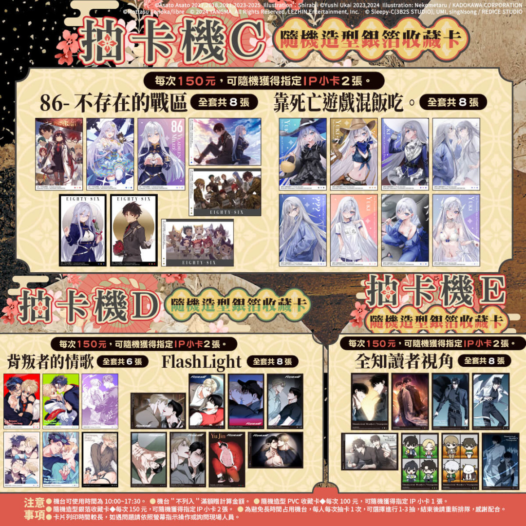 ● 為避免長時間占用機台,每人每次抽卡1次,可選擇進行1-3抽,結束後請重新排隊,感謝配合。