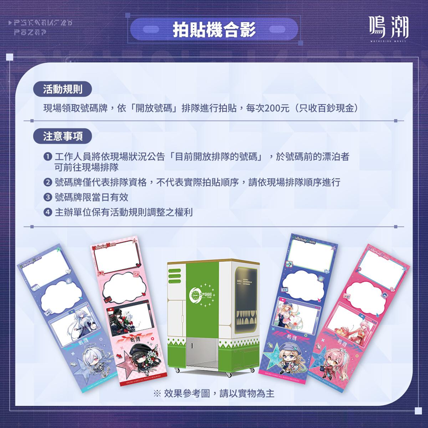 為回饋核心玩家,營運團隊特別規劃資深漂泊者福利。凡聯覺等級達到 80 級的玩家,展期間每日上午 9 點起可至兌換區報到,領取專屬額外獎勵,每日限量 150 名,送完為止。此外,展區設有共鳴者主題的「星炬拍貼機」(每次 200 元,僅收百鈔),舞台區則定時舉辦競速挑戰賽與索拉里斯大猜謎,邀請嘉賓與玩家同樂。