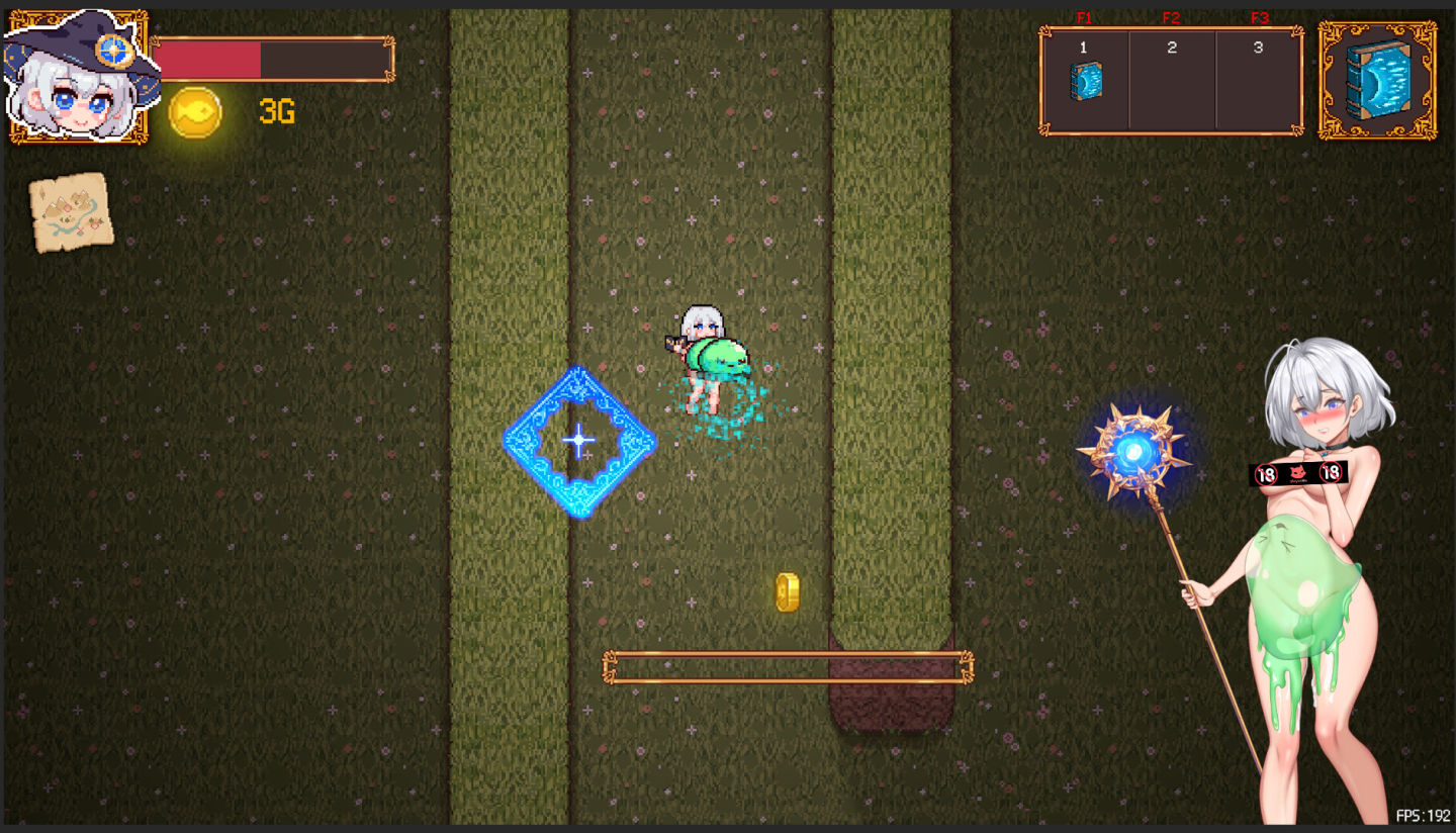 這是一個懶惰的魔法使在使用不屬於自己的魔法時,被懲罰而扔進了色情造物迷宮裡的故事。本遊戲全部色情內容為百合、扶他、觸手,以及魔物,無人類男性。被小怪抓住時會進入Live2D動畫,在戰敗給Boss時會被當場羞辱(像素動圖+聲效),羞辱到無力反抗後會被帶回家進行更刺激的調教!(高清CG+全語音)