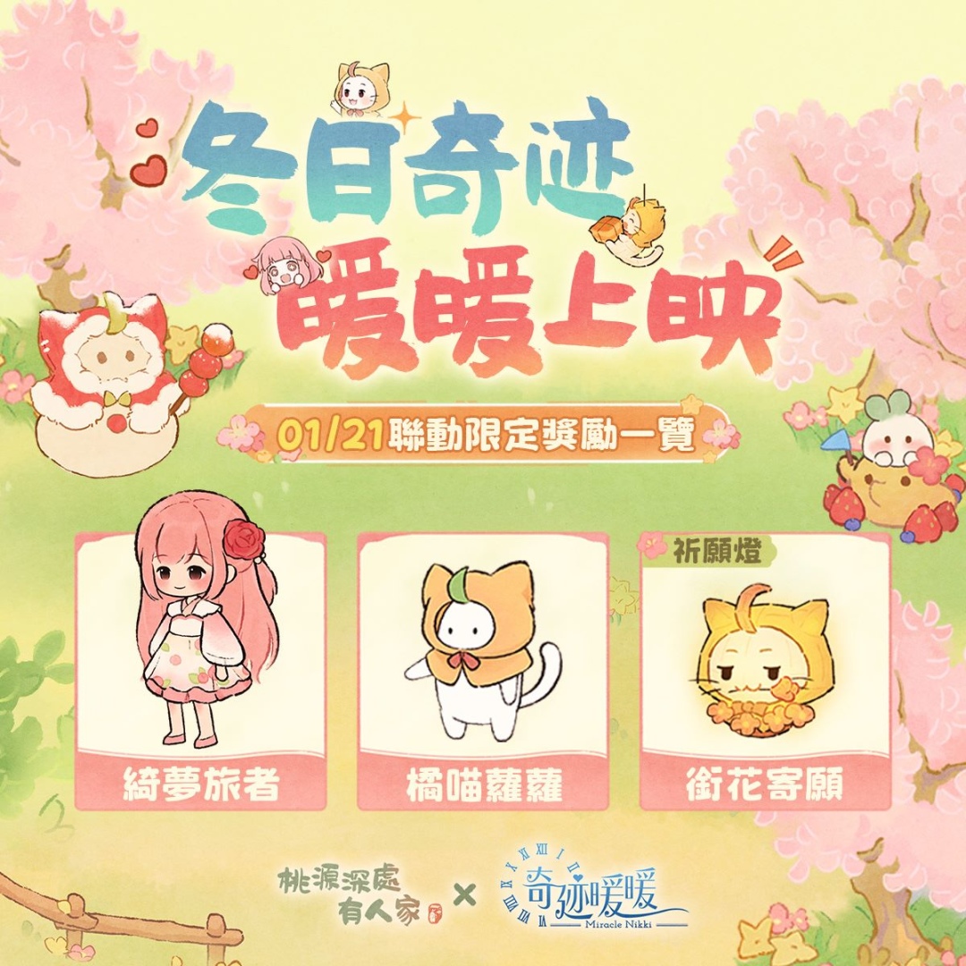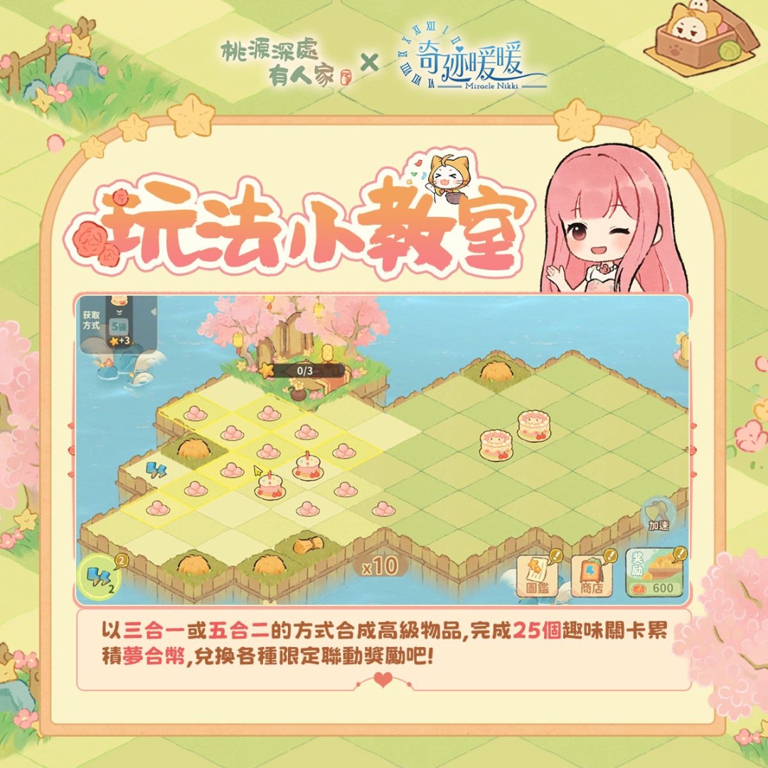 星宿科技今(21)日宣布,療癒系模擬經營手遊《桃源深處有人家》攜手人氣IP《奇迹暖暖》展開夢幻聯動!遊戲中的主角暖暖與大喵一同來到桃源,準備度過一個暖暖的冬天啦!聯動從今(21)日起正式開跑,開放限定「三秋夢合」合成玩法,只要透過遊戲內分享就能獲取同款陶陶幻型時裝,參加活動玩法,還有15款不同禮物免費兌換,一起來暖暖過冬吧!