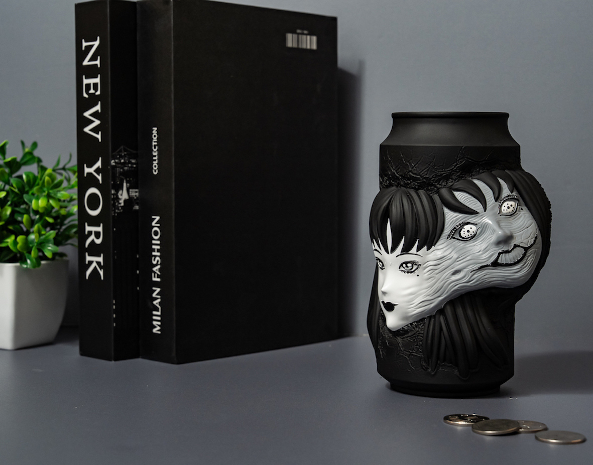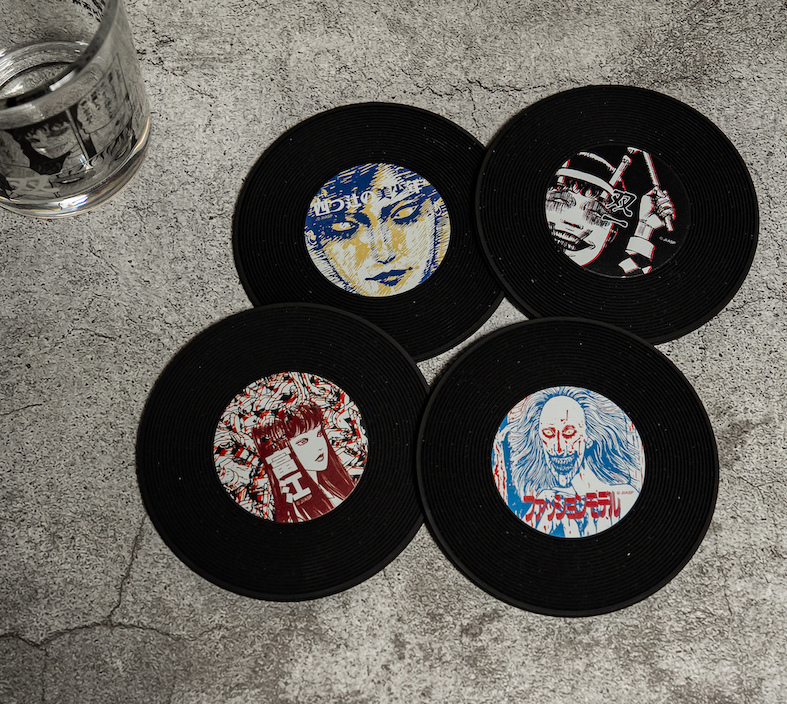 別以為關上家門,就能將不安隔絕在外。冰箱門板上,口含鐵釘的「雙一磁鐵」讓你不會輕易忘記貼在上面的注意事項!吃飯時,用著看似優雅的「陶瓷碗盤組」,隨著湯汁見底,碗底那張扭曲的面孔便悄然浮現,肯定讓你心跳漏一拍。有著主角圖面設計的四款「黑膠唱片杯墊」,穩穩地幫你接著滑落的水滴,桌面乾爽潔淨這件事就交給他們。回家記得掏空口袋零錢,因為富江「存錢筒」正張著嘴,等待吞噬你的每一枚銅板,旁邊擺放的「精美畫冊集」,總是在提醒你三不五時就該拿起它,回味一下每個經典場景!