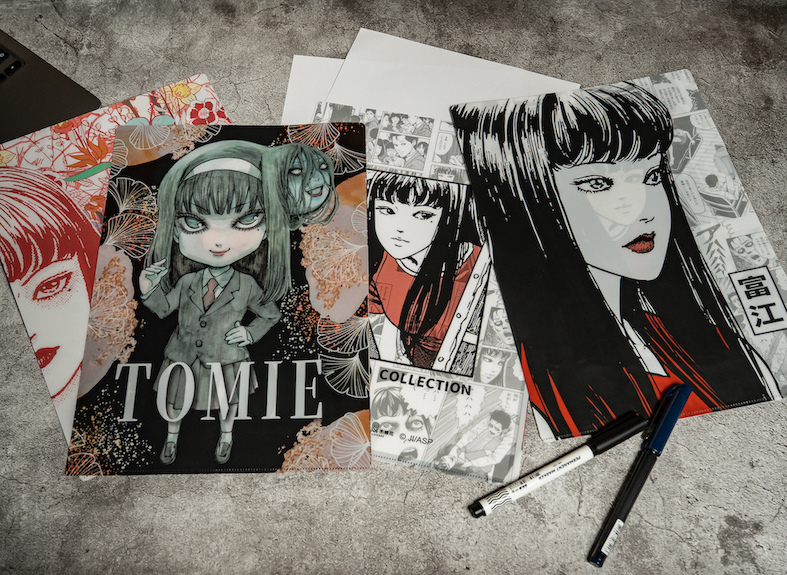 那些視線,從來不只存在於漫畫中!天冷就讓「多功能保溫杯」杯身上的富江提醒你隨時要補充水分。通勤路上少不了的「硬殼證件套」有著富江回眸一笑的圖面設計,緊貼胸口,除了你的心跳外,彷彿還多了一道陌生的頻率唷!而走到哪都不離身的手機,就交給纏繞於指尖與掌心之間的富江「手機掛繩」,就像一條無形牽引線,將你與她緊緊相連。包包裡富江「L夾」看似沈默,直到抽出文件的那一刻,那抹不懷好意的視線才從邊緣滲出來,保證你不會再把文件亂亂丟啦!辦公桌上放上兩款富江「壓克力立牌」,靜靜注視著你忙碌的身影,讓他們成為日常一部分,你才會發現,這些角色從未打算只當旁觀者。