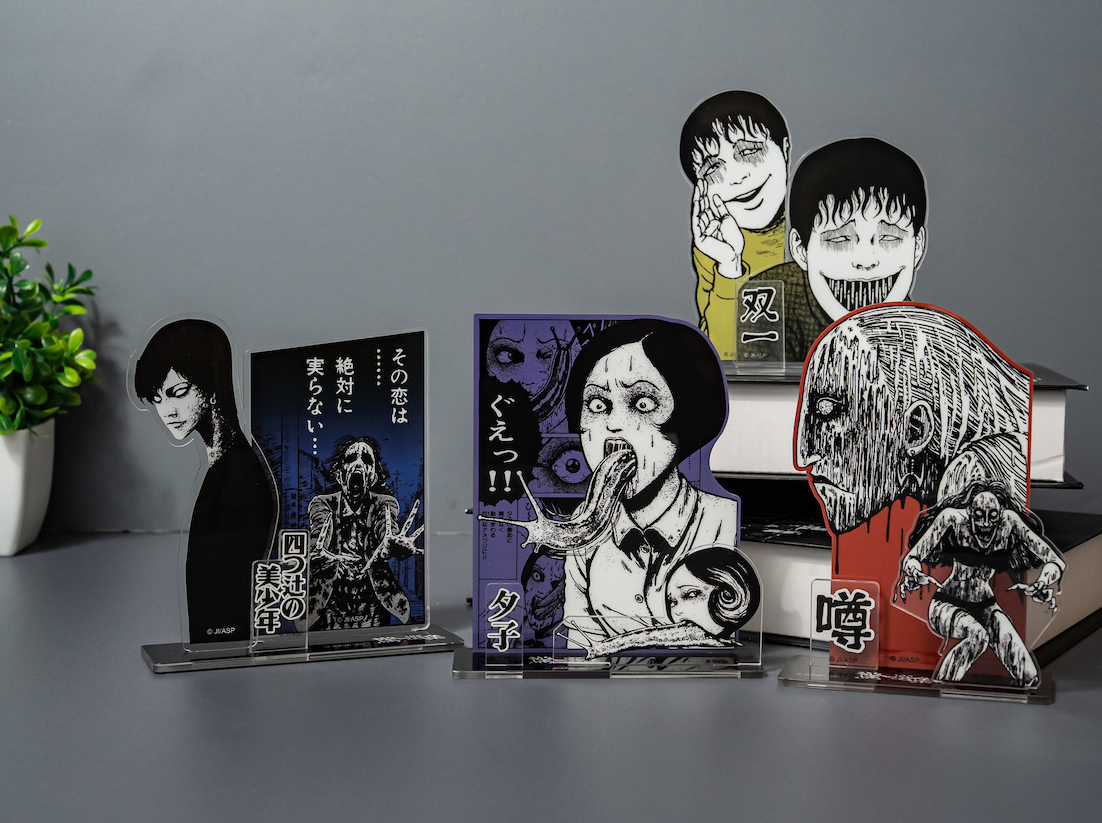 外出也能帶著富江到處走!穿上有著富江與雙一的「棒球衫」,親膚材質舒適有型,再搭配上兩款低調中帶有細節設計的「棒球帽」,包上再來別讓各種表情的四款富江「金屬徽章」,讓你街頭上回頭率百分百!有些東西不帶出門就是感覺少了點什麼,富江、雙一、押切及蛞蝓少女四款「御守」請你隨身攜帶不要忘。不用再隨意折起書角啦,富江、押切及淵等六款超高還原度的立體「書籤」,幫你標記看到哪個章節。桌上擺放蛞蝓少女、雙一及押切等四款「立牌」靜靜盯著你,感受另一種陪伴感。