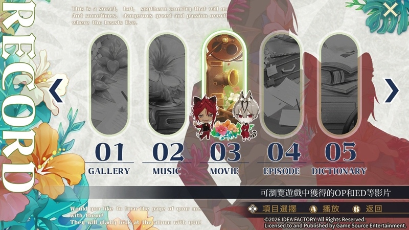 可以查看CG、樂曲、動畫、章節選擇等內容。