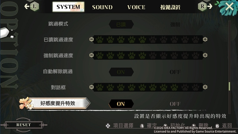 ※如果使用默認名字進行遊戲,角色稱呼時會有語音。