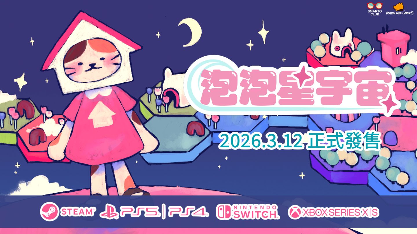 Astrolabe Games今日宣布,由Smarto Club製作的超可愛銀河建設模擬遊戲《泡泡星宇宙》將於2026年3月12日正式發售,正式版將在PS5、PS4、Nintendo Switch以及Xbox Series X|S和PC Steam同步推出,其中NS版預購現已開啟。