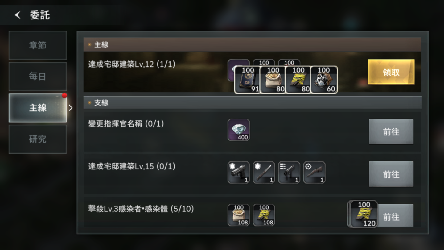 4. 每日與主線任務:左下角的任務提示主要是提供「章節」任務的提醒,可以點擊筆記本本體,進入委託中領取主線、支線和每日任務完成所需的獎勵。