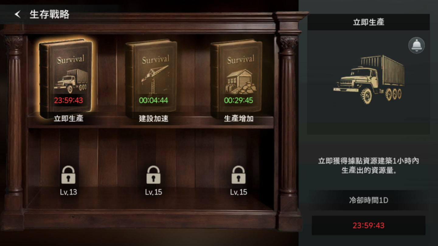 至於大課長那肯定是「全部點滿就對了!!!」,透過「野外」部分角色對於帶兵效益提升、建築時間縮短的特性,大幅度的加速宅邸內所有經營的提升,並且在中間等待建築期間將「探險」推高層數,同時將兩邊資源一次拿滿。