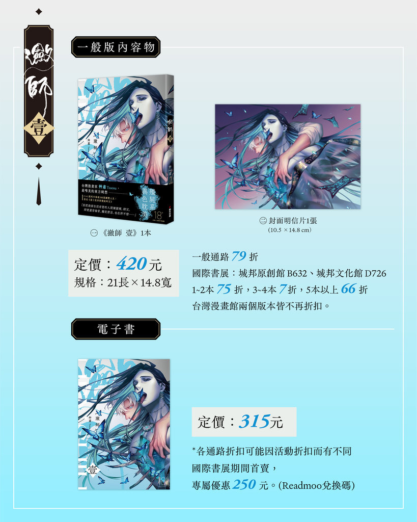 實體門市與網路商城購買《瀲師 壹》(不限版本),限量贈特典色紙一張。