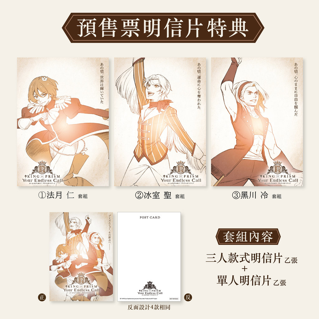 ➀法月仁套組、②冰室聖套組、③黑川冷套組(每套組內含三人海報款式一張+個人單人款式一張)
