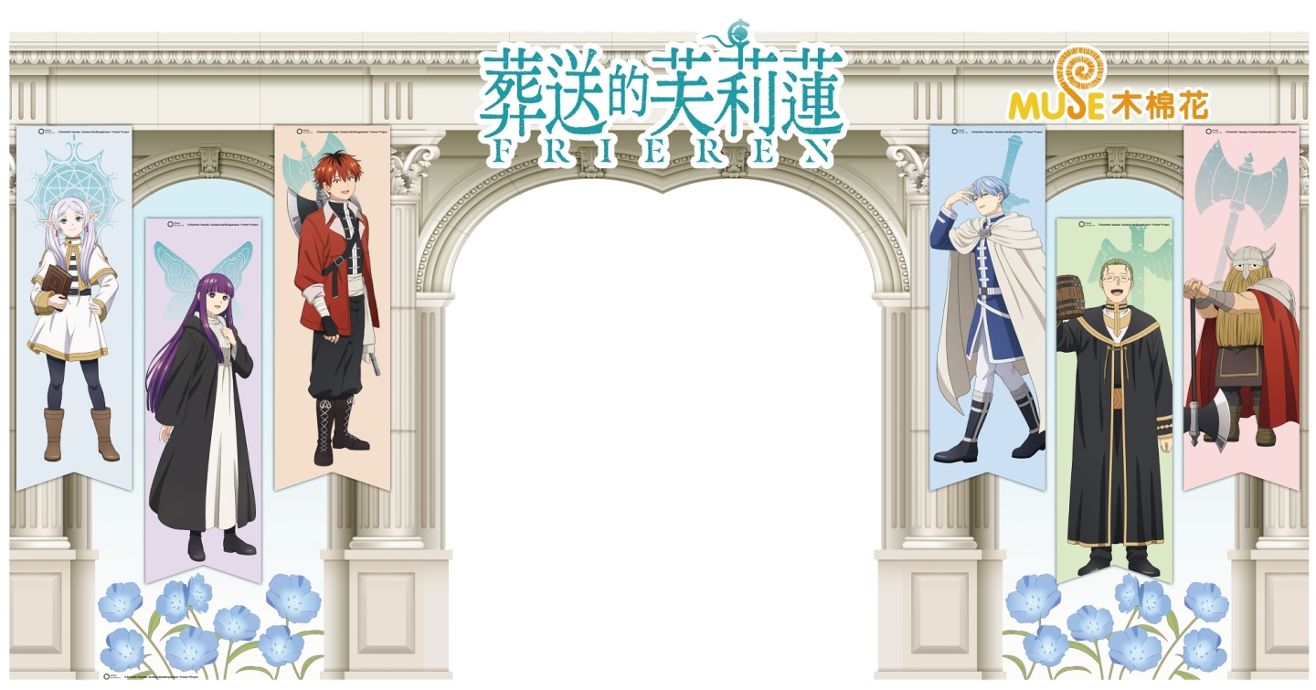 即將於2月5日到2月9日在南港展覽館一館登場的「2026台北國際動漫節」,木棉花國際由隆重推出動畫第二季的《葬送的芙莉蓮》領軍。入口處典雅又大氣的歐式宮廷拱門,搭配上芙莉蓮、費倫、修塔爾克,以及欣梅爾、海塔、艾冉的巨幅掛旗,不同世代的組合卻都有著深深的羈絆。多款全新商品包括有著Q版芙莉蓮金屬配件的護照套;全彩潮流T恤上,身穿素雅清新和服的芙莉蓮讓人眼睛為之一亮;有著夜光效果的壓克力杯墊,每口喝下的水都像是有魔法陣加護的療癒風情。先前一推出就造成搶購風潮的《葬送的芙莉蓮》金屬海報,本次2026台北國際動漫節特別限量再版推出,就在木棉花展區外圈的精選商品區銷售,請把握這個難得的機會!
