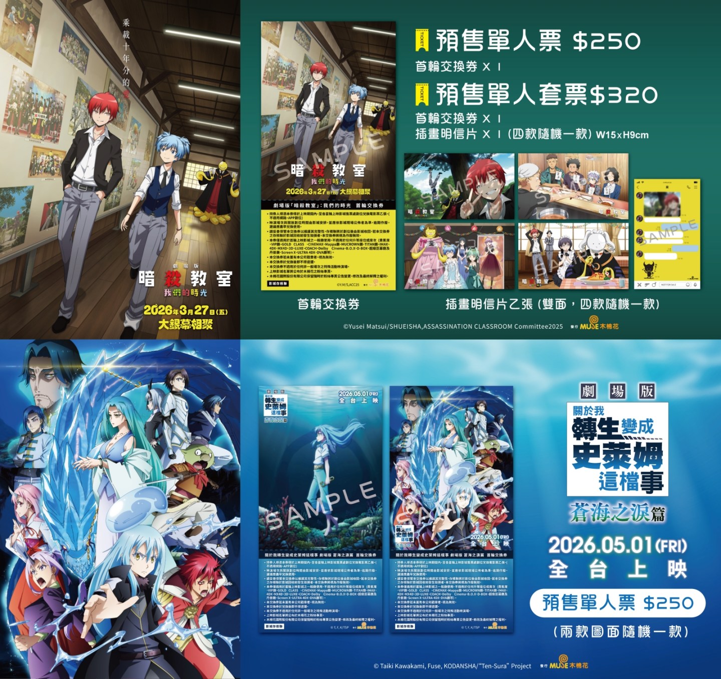 將在3月27日於大銀幕相聚的《劇場版「暗殺教室」:我們的時光》,以及5月1日即將上映的《關於我轉生變成史萊姆這檔事 劇場版 蒼海之淚篇》,本次動漫節期間都可以在木棉花攤位展區外圍的精選商品區搶先入手預售票,參加打卡活動就可以兌換電影限定贈品。此外,引頸期盼的《劇場版 魔法少女小圓〈瓦爾普吉斯的迴天〉》與最新 RPG 手機遊戲進行聯動,在木棉花攤位的小舞台帶來虛寶贈送活動,玩家們千萬不要錯過。