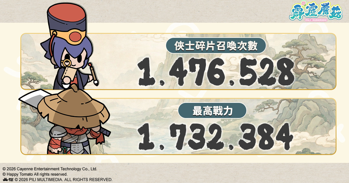 本次封測中玩家共召喚出「1,476,528」個俠士碎片,數量相當驚人。