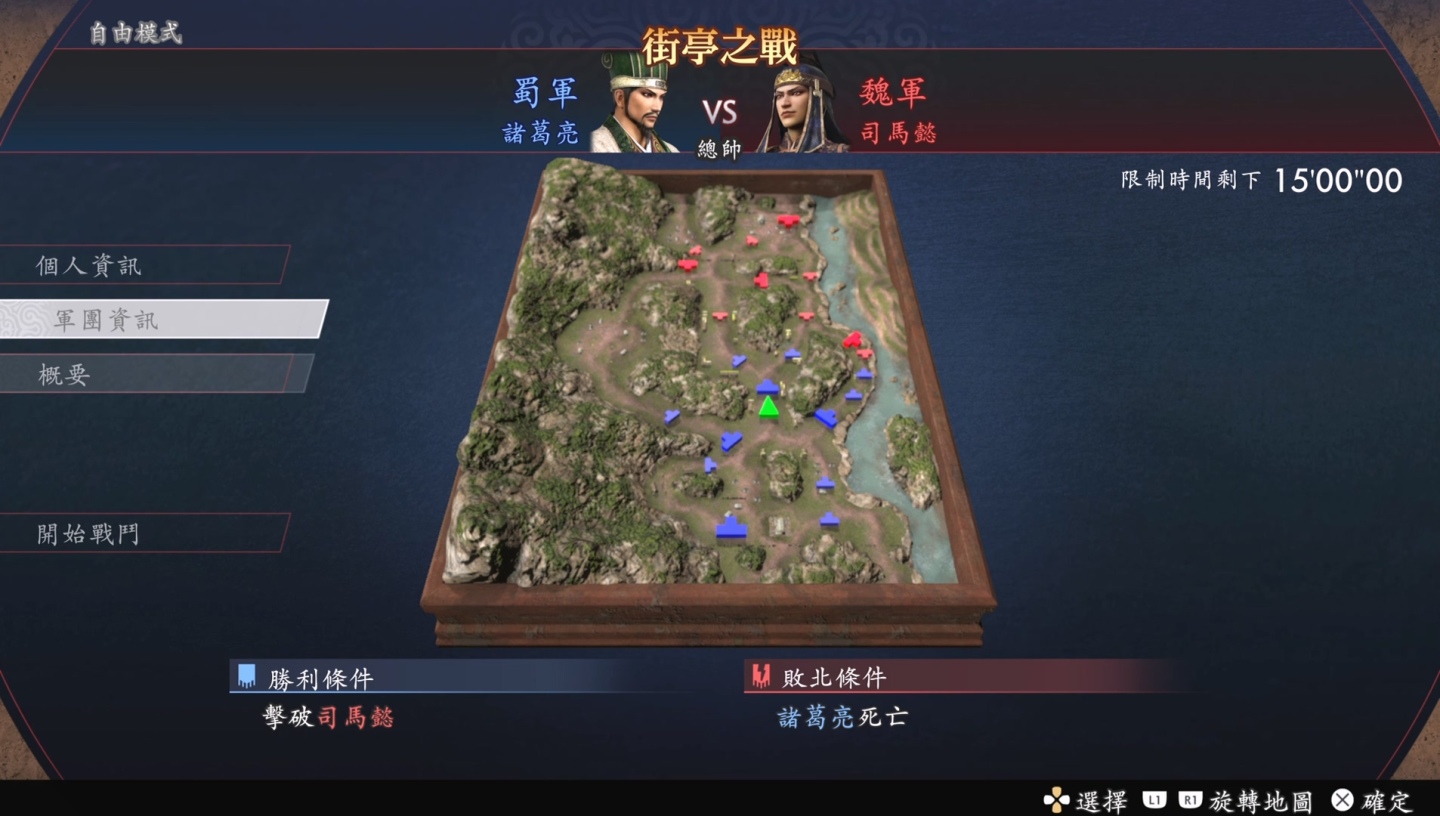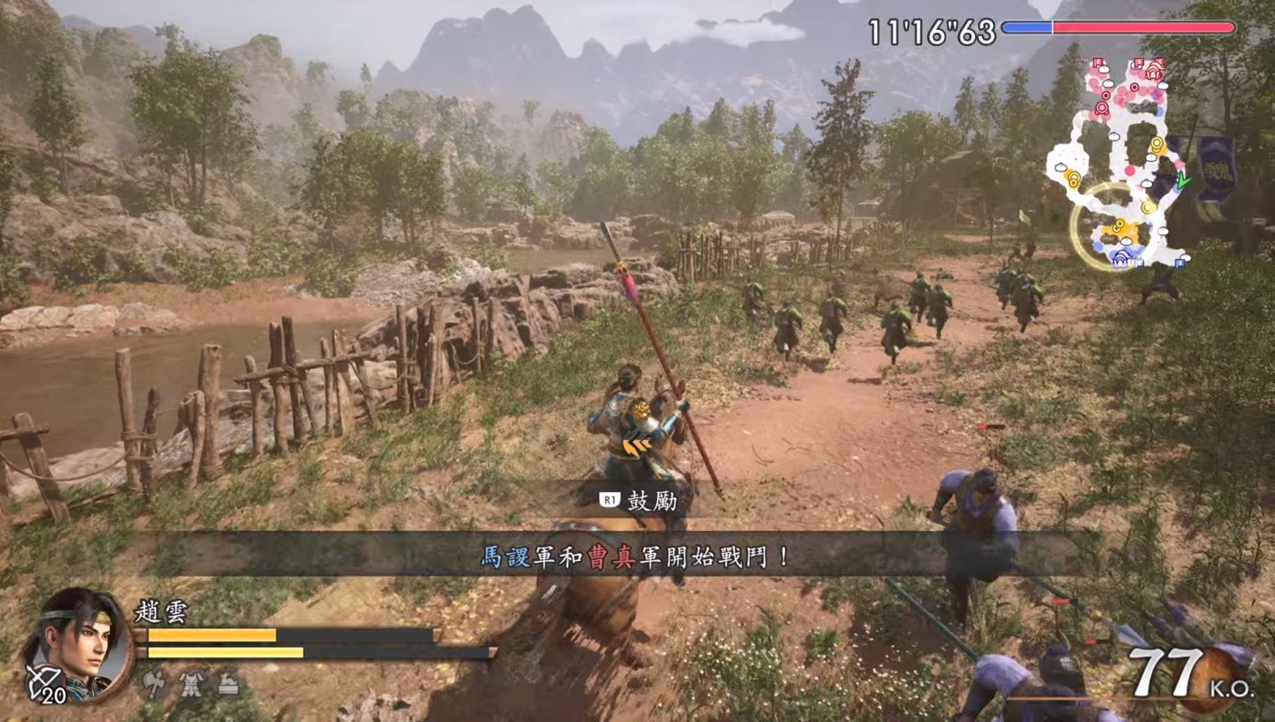 在現場提供的 15 分鐘版本中,舞台設定在經典的「街亭之戰」。解析度相較於 PS2 時期有明顯提升,但是還是能感受到經典模組的樣貌,不過在戰場的影格率還有更穩定的空間,可惜的是目前現場提供的僅有中文配音,要是能玩到日文配音,想必會讓許多玩家更有回憶重現的感覺,本作目標是讓玩家在現代主機上重溫系列巔峰期的感動,同時透過新系統提升戰鬥爽快感。