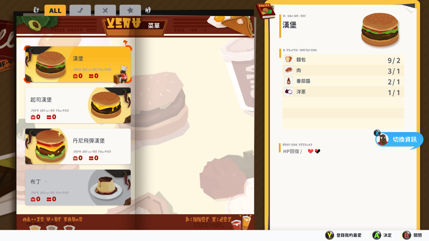 此外,廣闊地圖中藏有大量隱藏道具與收集要素,玩家還能翻找冰箱與抽屜取得食材,製作各種料理(例如不同種類的漢堡),強化攻擊力或防禦力,讓探索樂趣全面升級。