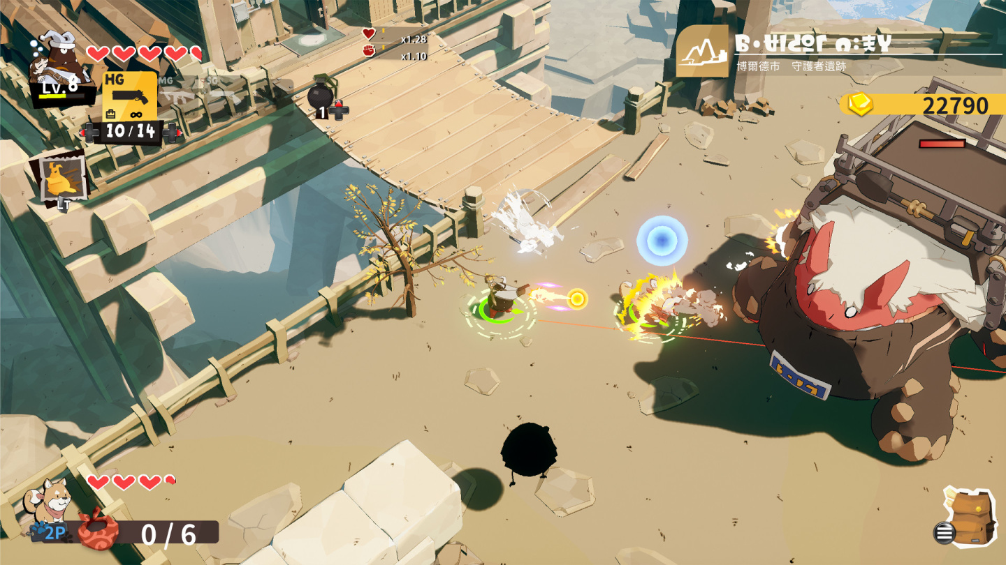 手槍、機關槍、霰彈槍、RPG、手指虎等武器可配置於 4 個欄位,各武器的性能也有鮮明的差異。從能冰凍住敵人的槍械,到瞄準時防禦力提升的特殊武器,依照戰況靈活選擇裝備將成為攻略關鍵。同時也支援離線多人遊玩,可操作夥伴犬進行支援,無論是協助戰鬥、撿拾掉落道具,都能成為魔王戴蒙最可靠的後援。