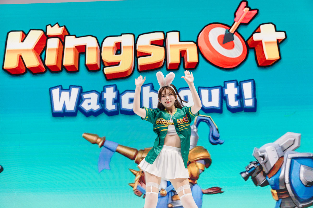 最強韓援啦啦隊女神金娜妍作為首日應援代表,以招牌山兔形象及充滿活力的應援造型甜美登場,並帶來為《Kingshot》專屬打造的應援舞蹈。金娜妍充滿感染力的笑容與熱情舞姿,瞬間帶動全場氣氛,讓現場領主隨著歌曲一起高喊「Kingshot!Kingshot!」