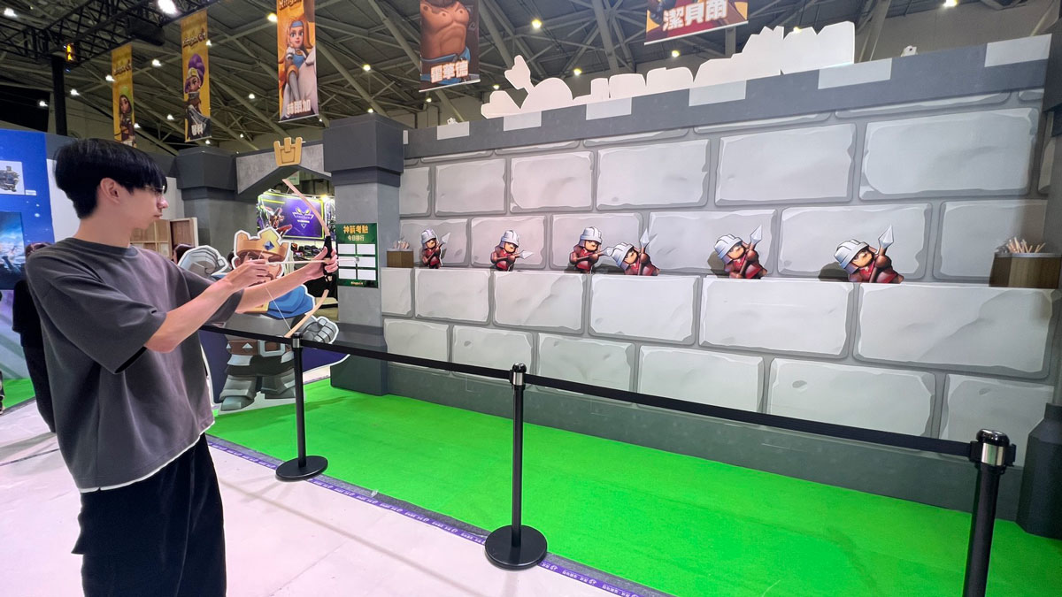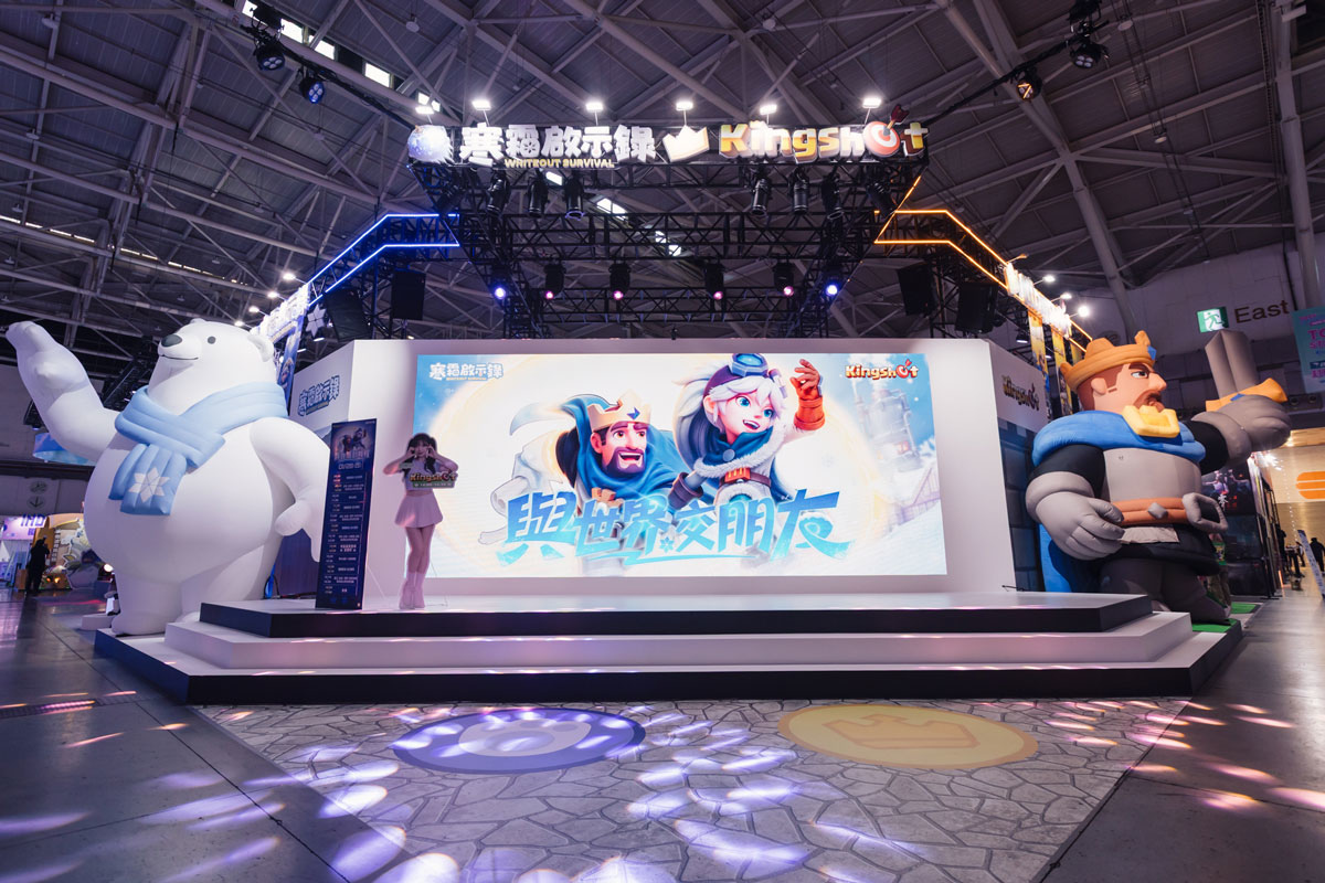 除了舞台焦點,攤位另一大驚喜則是高達 4 米的「寒霜大白熊」與「Kingshot國王」大型裝置,超萌且震撼的比例不僅吸引無數玩家爭相拍照,更成為電玩場最吸睛的打卡指標。舞台前的 AR 互動裝置更是讓玩家駐足合照,感受與大白熊及國王一起騎馬打雪仗的樂趣。