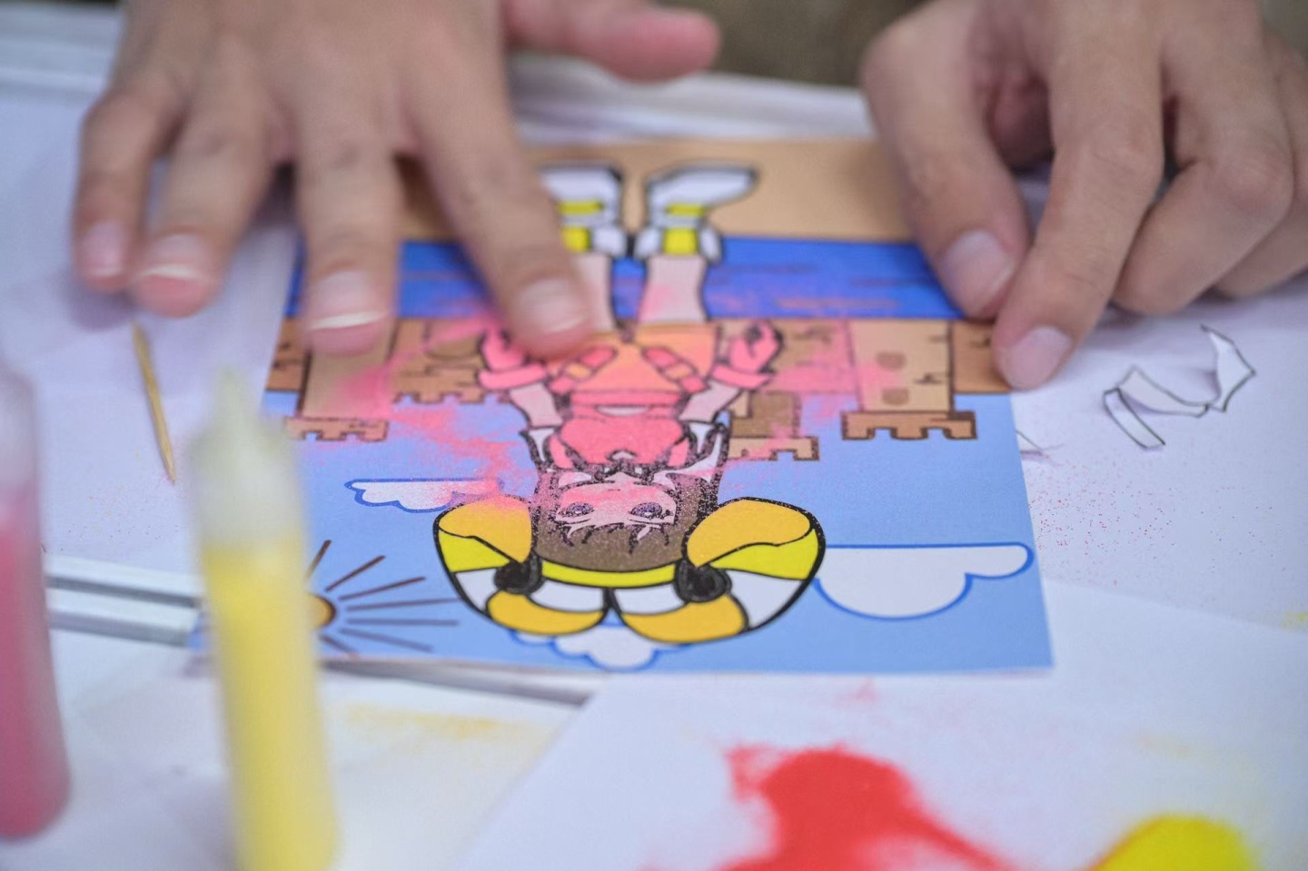 而一旁的「服裝DIY」小鋪則洋溢著寧靜專注的氣息,冒險者們悉心挑選圖案,將彩沙緩緩鋪灑,親手讓鍾愛的RO服飾漸次浮現。這份親手創作的樂趣,彷彿帶領大家穿越時光,重拾童年時那份最單純的手作喜悅。RO 的世界不僅存在於螢幕中,更透過這些觸手可及的互動,始終溫暖地陪伴著一代又一代冒險者共同成長。