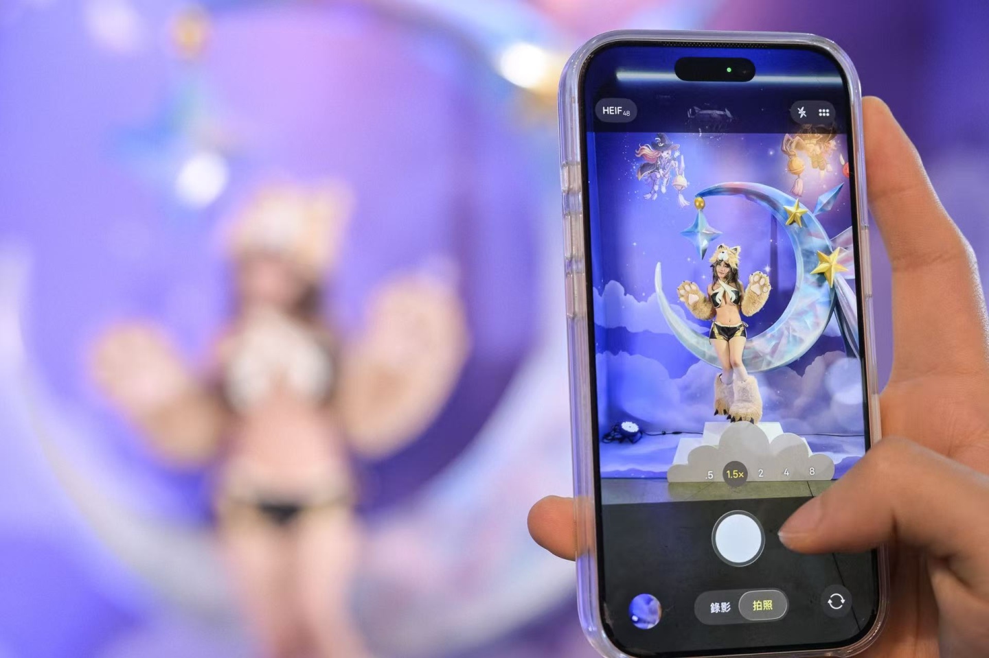 試玩區以普隆德拉中央噴泉為靈感打造,冒險者們一邊排隊,一邊熱烈交流最新版本的攻略心得。而一旁的飛行坐騎「月冠星軌」拍照區更是熱門打卡點,始終洋溢著笑聲與快門聲。我們準備了各式各樣的趣味頭飾與手持道具,看著大家發揮創意,擺出或帥氣、或逗趣的姿勢,彷彿下一秒就要乘著星光,啟程飛往那片我們共同熱愛的廣闊世界!