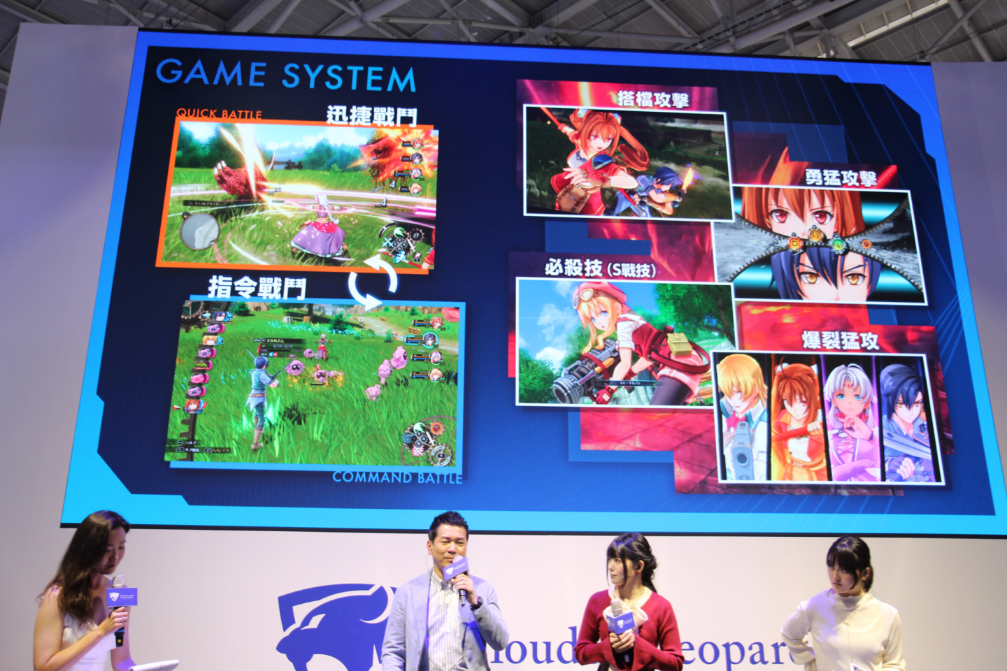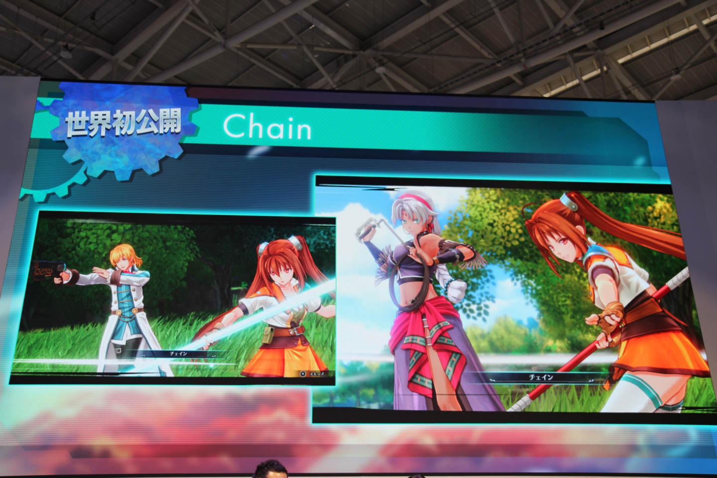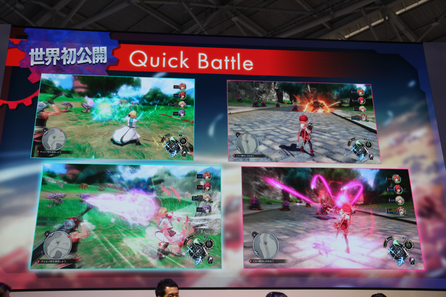 「世界首度公開」的《空之軌跡 the 2nd》實機戰鬥影片展示。近藤社長親自解說了畫面中的進化細節,首先在前作中,原野戰鬥主要集中在艾絲蒂爾與約書亞身上。但在《the 2nd》中,由於約書亞離家出走,玩家將能操作所有隊伍成員在原野上進行戰鬥。影片展示了緹妲、奧利巴特等人使用固有戰技在原野上華麗作戰的模樣。