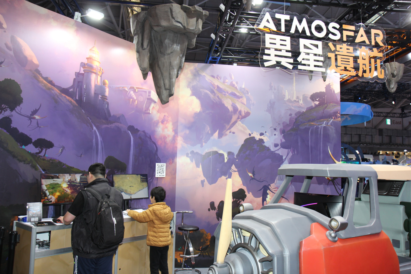 《異星遺航(ATMOSFAR)》 是一款支援最多 4 人連線的生存冒險遊戲。玩家需在名為「泰柯斯星」的星球上探索浮島與遺跡,並進行基地建設與資源管理,特別的是有許多飛艇可以搭乘交換,集英社遊戲於攤位現場實體還原了遊戲內玩家操作的「天梭艇」,玩家可進入艇內進行中文版首次試玩。
