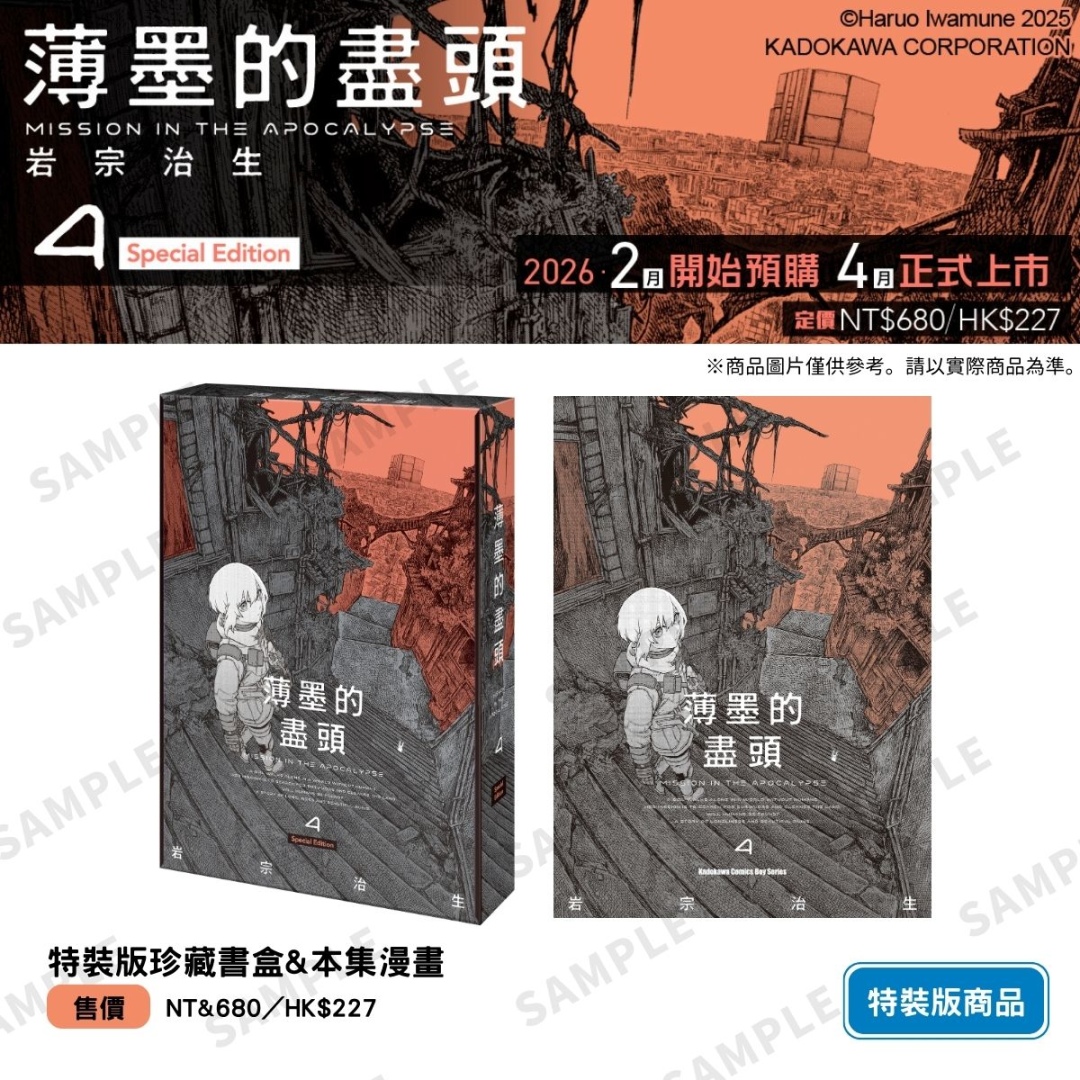 《薄墨的盡頭 (4)》特裝版即日起於全台指定通路開放限期預購,至 2/20(五)23:59 止,期間於台灣角川官網完成預購,再加碼贈送官網滿額優惠券 100 元。