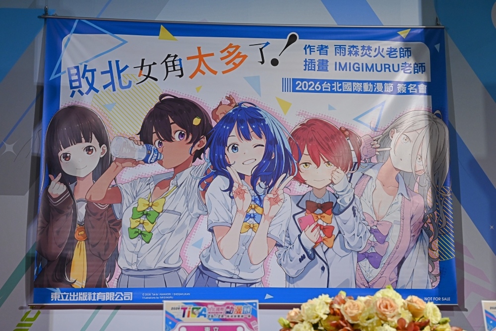 動漫節首日,東立出版社邀請到《敗北女角太多了!》作者雨森焚火、插畫家 IMIGIMURU 兩位老師舉辦簽名會,現場兩百位幸運讀者不僅在簽名時間與老師熱絡互動,也在簽名會時間中以有獎徵答方式贈送老師特別帶來的小禮物,最後更用賓果遊戲方式送出兩位老師親自簽名的女主角八奈見杏菜立牌。