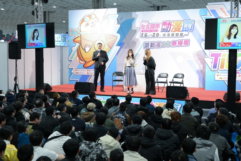 2026 台北國際動漫節第三天,ATC Taiwan 邀請聲優歌手伊藤美來小姐來舉行特典見面會。她在《普通女高中生要做當地偶像》中初次聲演主角,之後開始嶄露頭角,代表性的角色包括《五等分的新娘》中野三玖、《超異域公主連結 Re:Dive》可可蘿、《偶像大師 百萬人演唱會!》七尾百合子、《BanG Dream!》系列的弦卷心等等。現場粉絲帶來許多相關周邊在伊藤小姐登場時用力揮舞,她也一一掃視並且揮手致謝才打招呼:「大家好,我是伊藤美來,請大家多多指教!」看到不少懷念的周邊,她也大聲說著「好懷念喔」並且揮手謝謝粉絲。