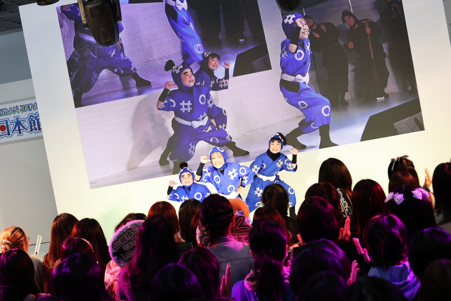 表演一開始,毒竹忍者隊船長 達魔鬼便來襲打算佔領日本館舞台現場,隨即一年級學員出場阻止,土井老師與四年級學員及六年級學員隨後跟上,與船長 達摩鬼帶來一場精采帥氣的武打對戰,所有演員一口氣登場讓粉絲們歡呼不斷。演出過程中數度請口譯人員翻譯,帶來一段只有在日本海外表演才有的獨特趣味。