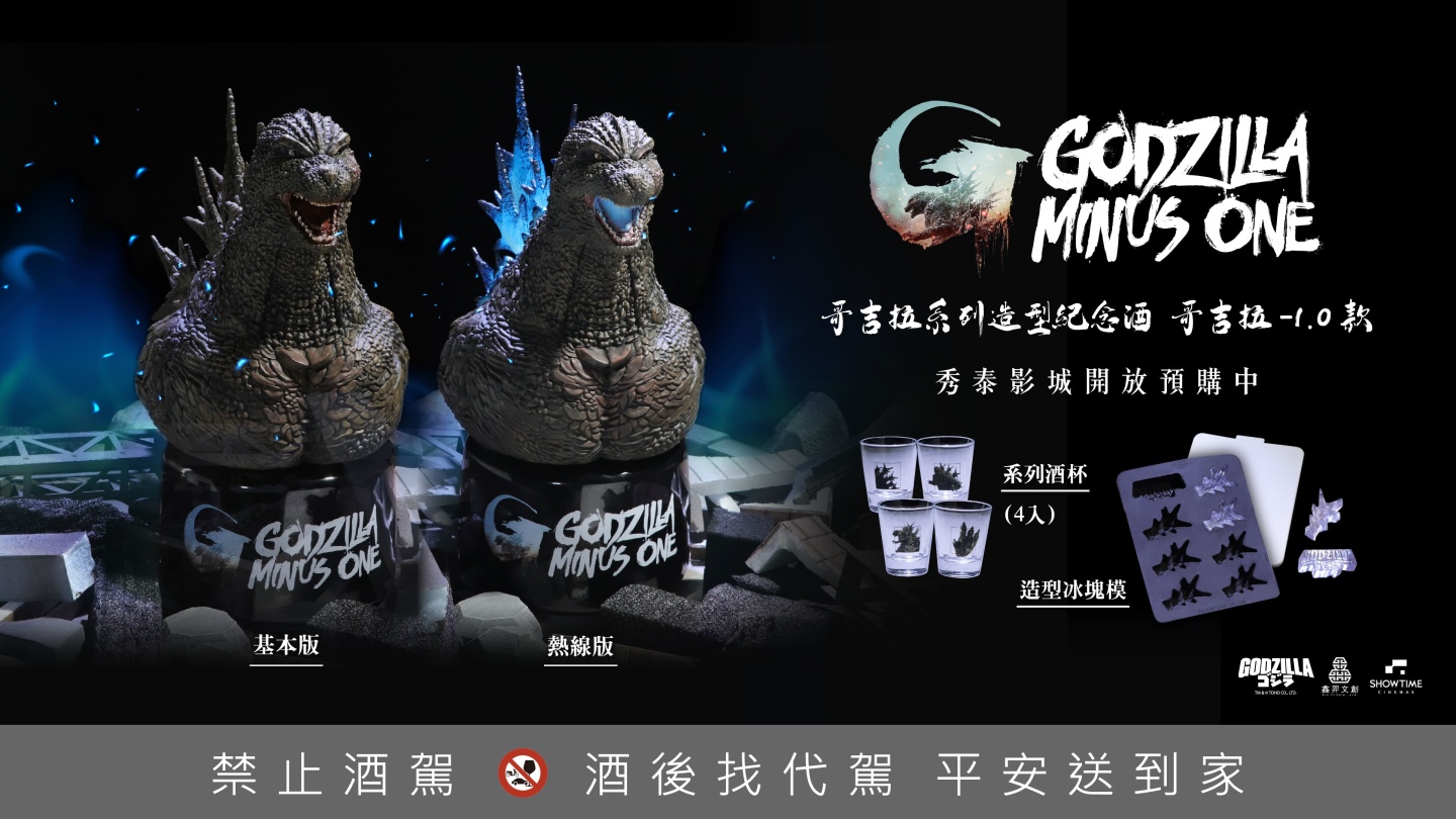 配合影展檔期,周邊商品同步展開販售。全台秀泰影城即日起至 3 月 31 日開放預購東寶授權的「哥吉拉系列造型紀念酒」,共有紅蓮哥吉拉、機械哥吉拉等 5 款造型,內裝金門皇家 56 度三年陳高。此外,美麗華大直影城於 6 樓設置展示區,限時展售 HIYA TOYS 的「霜魔石穆」、「哥吉拉 進化版」透光收藏品及萬代(Bandai)系列周邊,提供影迷選購。