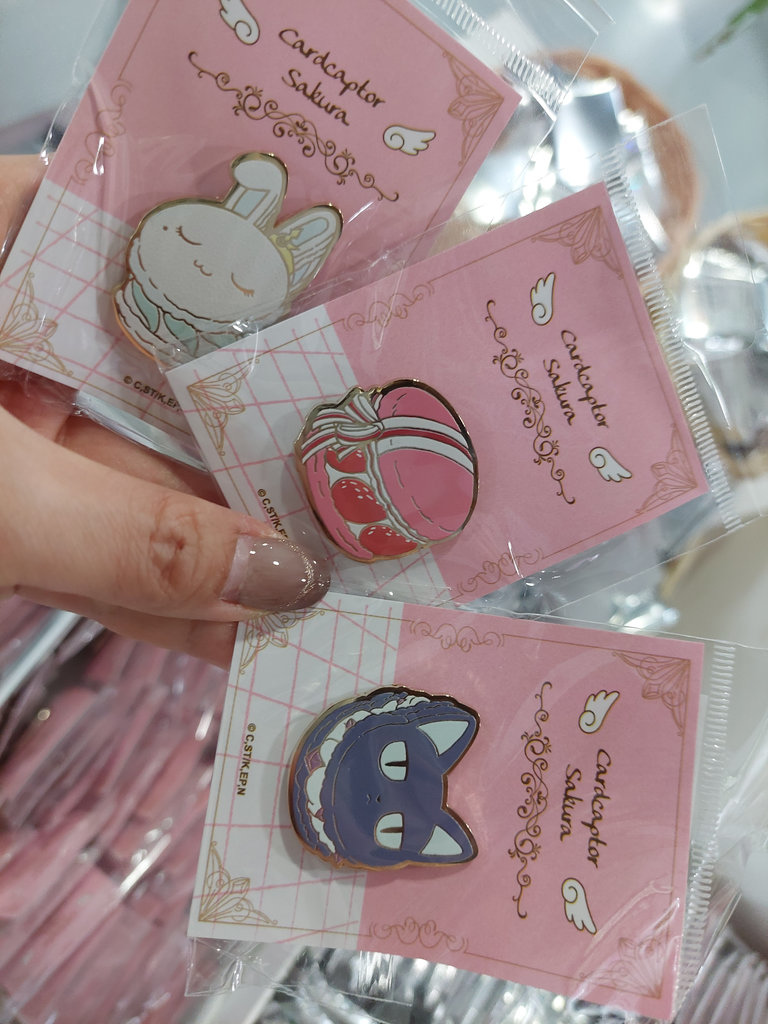 本次推出多款限定商品,包含愛心造型盲抽徽章(10 款)、可轉動的摩天輪造型壓克力立牌、小可卡套、A4 橫式資料夾(4 款配色,搭配小櫻不同戰鬥服)、銀箔材質郵票造型明信片,以及透紗刺繡 T 恤、短版 T 恤與多款摺疊購物袋,每款都兼具收藏與實用性。
