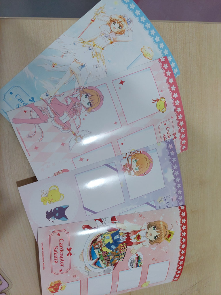 本次快閃店同步推出限定滿額贈系列,將小櫻的經典造型與透明牌意象結合,打造輕透、細緻的收藏單品。滿額贈之一為 壓克力透明牌,共推出五款設計,精選小櫻多套經典服裝造型,搭配透明牌輪廓與清透材質呈現。光線映照下展現柔和層次感,是值得整套收藏的限定紀念品。另一款滿額贈為 直式票卡夾,共兩款設計。其中一款以小櫻兩套可愛服裝為主視覺,搭配鏤空設計,展現輕盈氛圍;另一款則為甜點主題款式,以嫩黃色為基調,結合格紋鏤空設計,營造溫柔可愛的日系甜點風格。