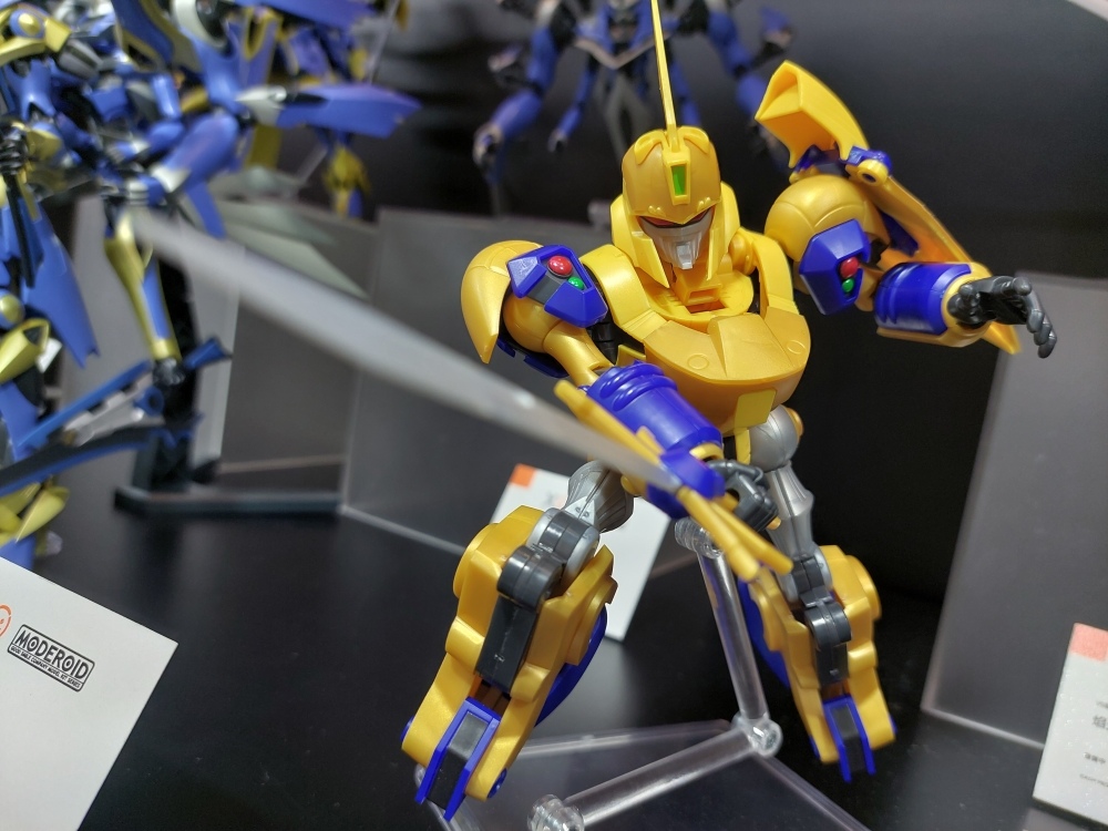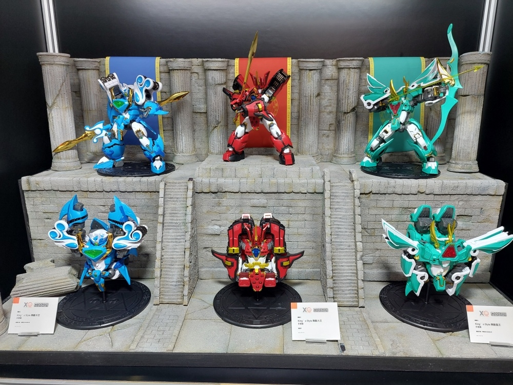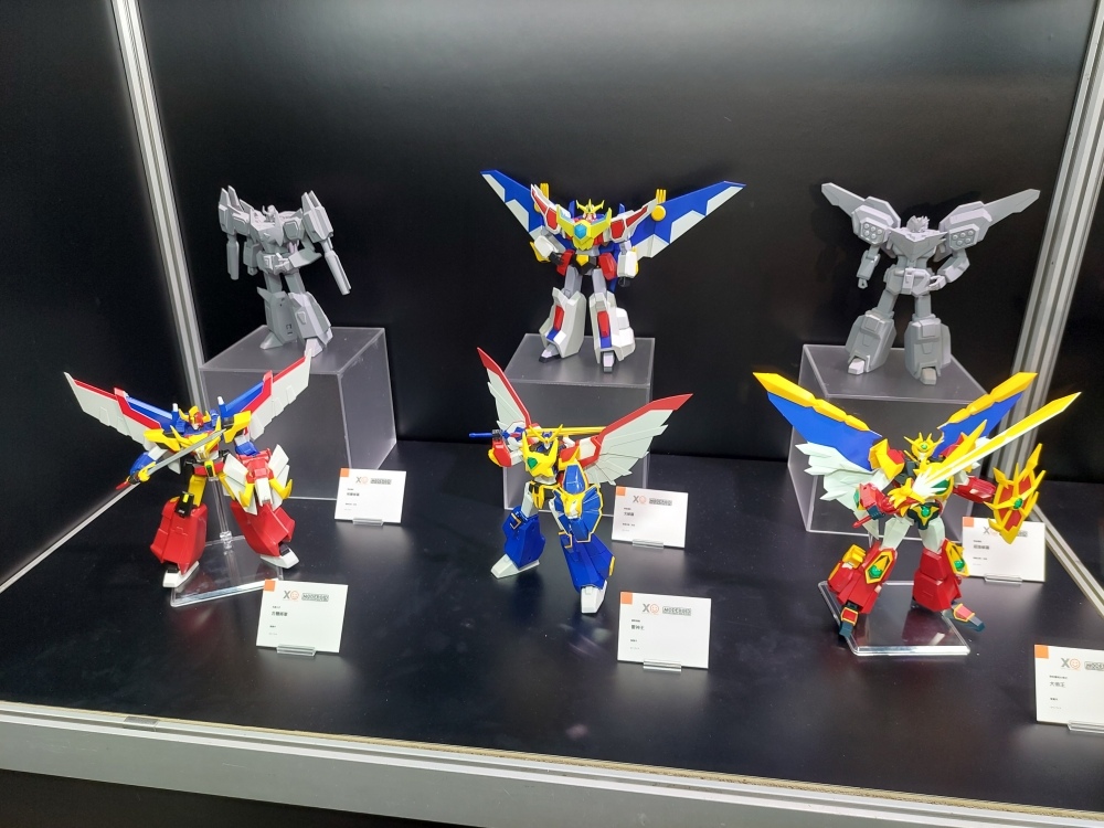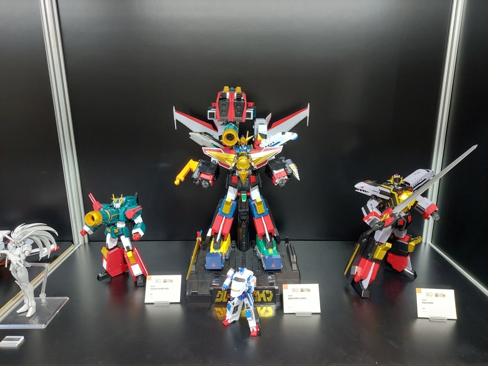 看板商品《魔動王》系列一字排開,除王金版外,本次展場首賣「MODEROID King’s Style 無敵火王超王金版」,還展出 HAGANE WORKS 系列的超級火王合金版,相信期待可動性的玩家應該等不及要收藏了。其他展櫃中充滿五、六、七年級老人們回憶殺作品,為了不講古就不一一贅述了,但看到《NG騎士檸檬汽水》的相關機體,還是讓筆者不免感嘆了一下時間的流逝;另外《勇者傳說》、《太陽勇者》都有大規模及胸像展出,不管對這系列熟不熟悉,看到的瞬間還是會被震撼:「機器人可以長得這麼俊美嗎?!」這正是筆者內心的呼喊。