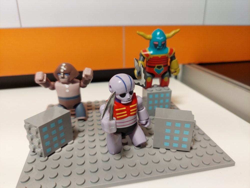 新品牌「BRICKROID」高約五公分,小巧的外型在上色之後被賦予每款機器人的特色,如果家中空間有限但還是想要布置一個模型展示小天地,這個系列可以達成你的願望!現場就布置了三個場景做為參考,只要有底板和大樓配件,你也能打造一個生動又有趣的畫面。