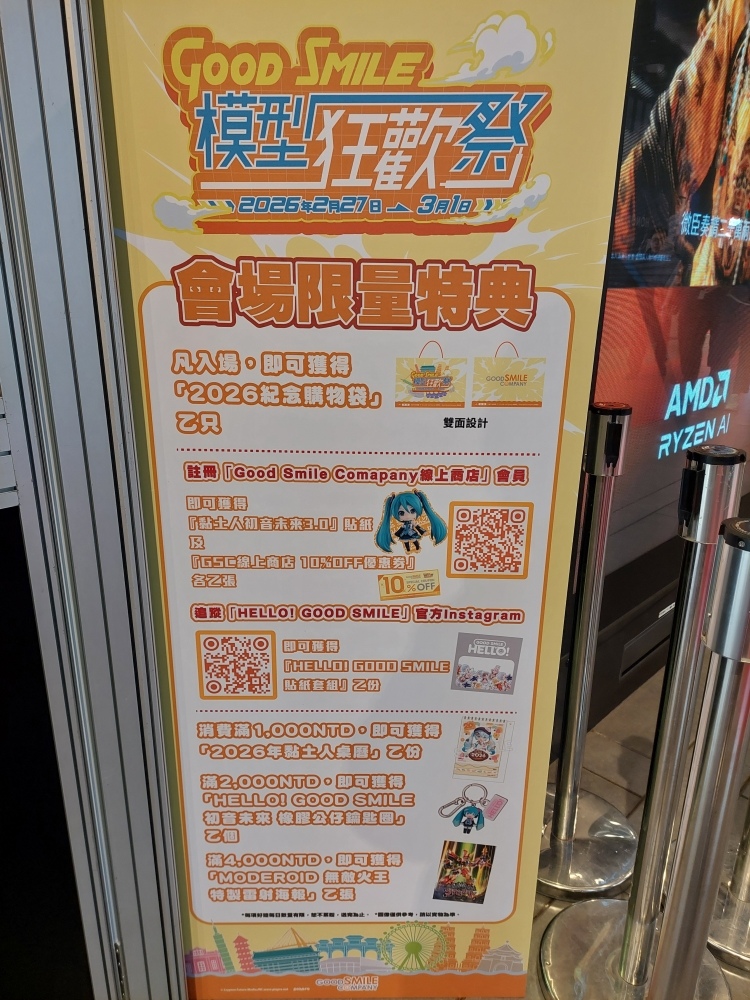 「Good Smile模型狂歡祭」今天起(2/27)至 3/1 於台北三創生活園區一樓舉辦,帶來「Mecha Smile」、「黏土人系列」、「HELLO! GOOD SMILE」與「比例模型」等人氣品牌的多種新作及熱門作品角色模型,讓玩家體驗Good Smile模型的魅力。