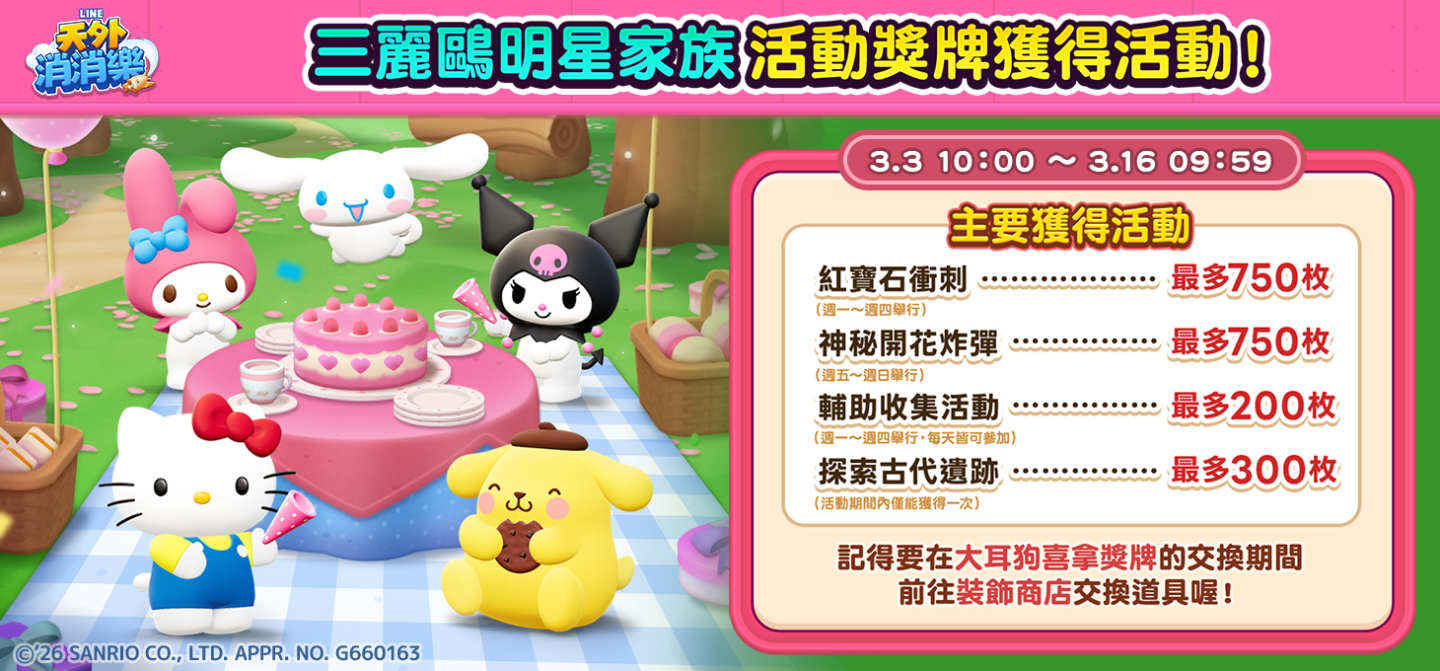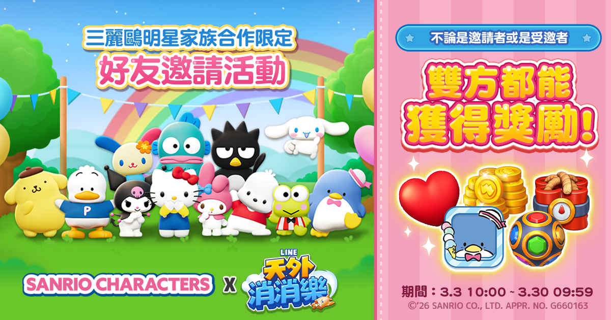 歡迎玩家們一起來參加這次《LINE 天外消消樂》與「三麗鷗明星家族」的精彩合作活動喔!